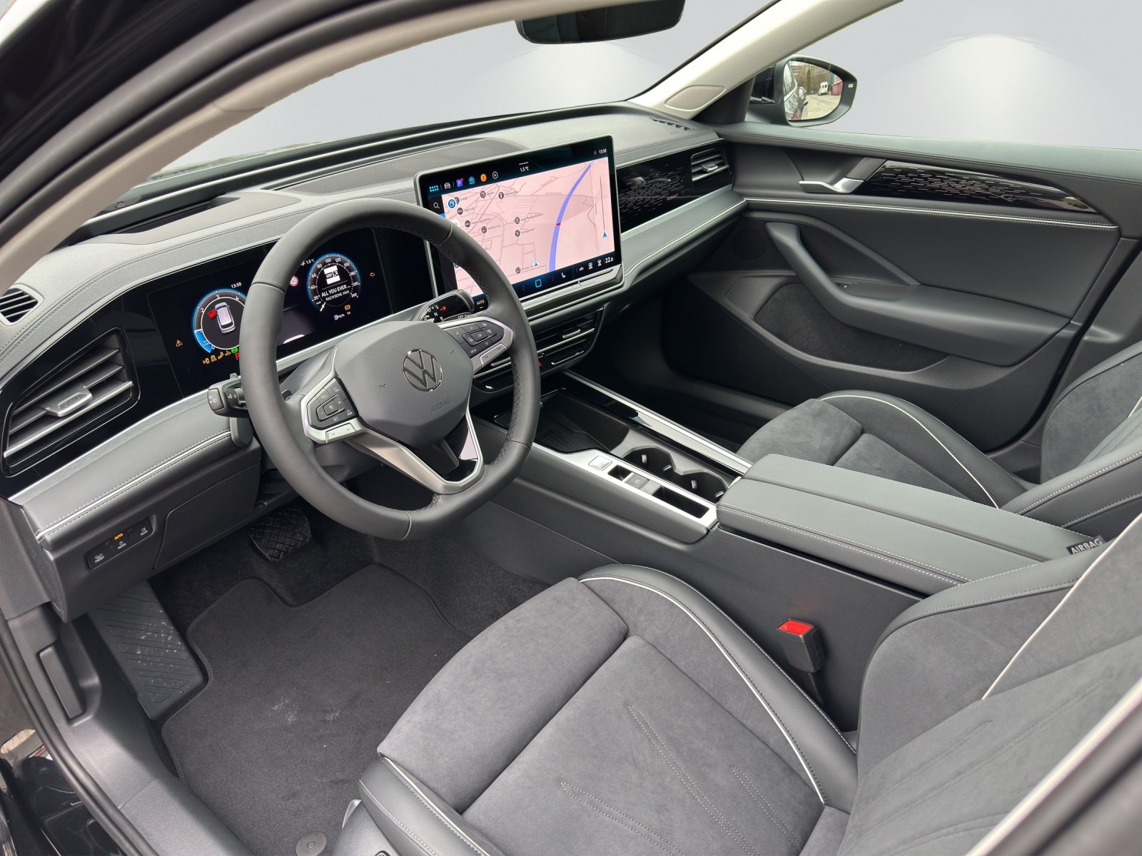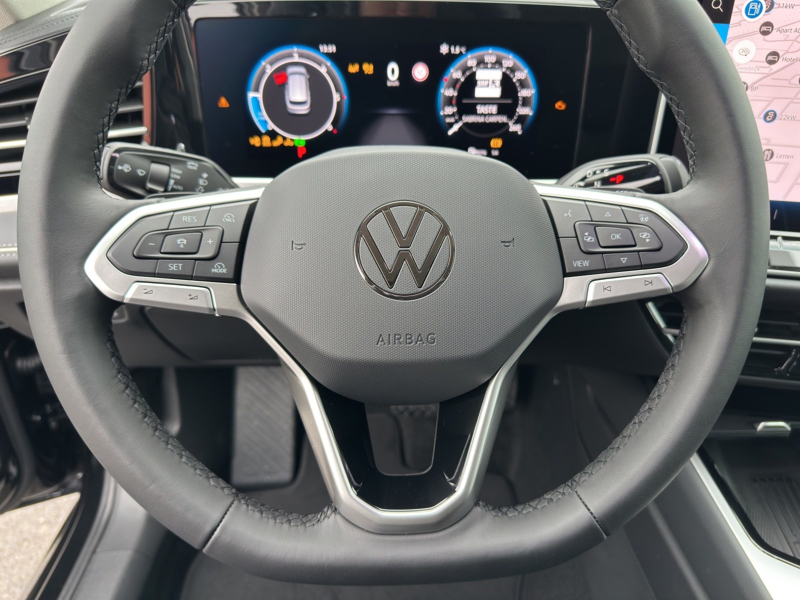 Serienausstattung Abbiegebremsfunktion und Ausweichunterstützung Airbag: Airbag für Fahrer und Beifahrer mit Beifahrerairbag-Deaktivierung Airbag: Knieairbag auf Fahrerseite Airbag: Kopfairbagsystem für Front- und Fondpassagiere inkl. Seitenairbags vorn und Center Airbag Ambientebeleuchtung 30-farbig Assist: Ablenkungs- und Müdigkeitserkennung Assist: Automatische Distanzregelung ACC "stop&go" Assist: Berganfahrassistent Assist: Elektronische Parkbremse inkl. Auto-Hold-Funktion Assist: Geschwindigkeitsbegrenzer mit vorausschauender Regelung Assist: Kreuzungsassistent Assist: Multifunktionskamera Assist: Notbremsassistent "Front Assist" mit Fussgänger- und Radfahrererkennung Assist: Rückfahrkamera Rear View Assist: Spurhalteassistent Lane Assist Assist: Spurwechselassistent "Side Assist" mit Ausparkassistent und Ausstiegswarner Assist: Traktionskontrolle (ASR) Assist: Verkehrszeichenerkennung Aussenspiegel mit Umfeldbeleuchtung und Beifahrerspiegelabsenkung, anklapp- und beheizbar, Aussenspiegelgehäuse in Wagenfarbe Chromleisten an den Seitenfenstern Dachreling silber eloxiert Einstiegs-/Warnleuchten in LED-Technik in allen Türen Einstiegsleisten vorne und hinten in Edelstahl Elektronisches Stabilisierungsprogramm und elektromechanischer Bremskraftverstärker Fahrwerk: Dämpfung hinten, Basis Fahrwerk: Dämpfung vorn, Normalfahrwerk, Stahl Fensterheber vorne und hinten elektrisch Frontscheibe in Verbundsicherheitsglas, wärmedämmend Garantie: VW Garantie 3 Jahre Lack-Garantie Garantie: VW Garantie: 12 Jahre Karosserie-Garantie gegen Durchrostung Garantie: VW Garantie: 2 Jahre ohne Kilometerbegrenzung Gepäckraumboden in 2 Höhen einstellbar Getriebe: 7-Gang Getriebe automatisiert Heckscheibenwischer mit Intervallschaltung Heckspoiler in Wagenfarbe ISOFIX-Halteösen für Kindersitze (auf den äusseren Rücksitzen und auf dem Beifahreresitz, Innenspiegel automatisch abblendend Klima: Klimaanlage "Air Care Climatronic" mit Aktiv-Kombifilter, Bedienungselementen hinten LED-Leuchte im Fussraum vorn, Lichtfarbe wählbar Lackierung: Uni-Lackierung Ladekantenschutz in Edelstahl Lenkrad: Elektrische Lenksäulenverriegelung Lenkrad: Multifunktions-Lederlenkrad beheizbar inkl. Schaltwippen Licht: Fahrlichtschaltung automatisch, mit LED-Tagfahrlicht Licht: IQ.LIGHT - LED-Matrix-Scheinwerfer Media: App-Connect mit Wireless App-Connect für Apple CarPlay und Android Auto Media: Digital Cockpit Pro, mehrfarbig, verschiedene Info-Profile wählbar Media: Digitaler Radioempfang DAB+ Media: Infotainment-System mit 32-cm-Display (12,9 Zoll) Media: Vorbereitet für We Connect / VW Connect & We Connect Plus / VW Connect Plus Media: We Connect / VW Connect Basisfunktionen - Kostenlos und ohne Laufzeitbeschränkung Mittelarmlehne hinten verschiebbar, mit Becherhaltern und Ablagemöglichkeit für Handy/Tablet Paket: Assistenzpaket "Park & Comfort" Paket: Infotainment Paket "Discover", Streaming & Internet fähig Paket: Technikpaket Insassenschutz Polster: Sitzmittelbahnen der Vordersitze und der äusseren Rücksitzplätze in Mikrovlies Räder: Leichtmetallräder "Napoli" Servolenkung elektromechanisch, geschwindigkeitsabhängig geregelt Sitze: Lendenwirbelstütze, pneumatisch einstellbar beidseitig Sitze: Rücksitzlehne asymmentrisch geteilt umklappbar, mit Durchlademöglichkeit Sitze: Sicherheitsoptimierte Kopfstützen vorn, längs- und höheneinstellbar Sitze: Sport-Komfortsitze vorne Sitze: Vordersitze beheizbar Sitze: Vordersitze mit Massageprogrammen Sitze: ergoActive-Sitze vorn höheneinstellbar, mit verschiebbarer Oberschenkelauflage Sonnenblenden, mit Make-up-Spiegel beleuchtet auf Fahrer und Beifahrerseite Stossfänger in Wagenfarbe, Lufteinlass mit Chromleisten Textilfussmatten vorn und hinten Tür und Seitenverkleidung, Insert in Kunstleder mit Doppellkapnaht Umfeldbeleuchtung mit Logo-Projektion Verbandtasche, Warndreieck und Warnweste Wärmeschutzverglasung grün, seitlich und hinten Zentralverriegelung mit Fernbedienung
