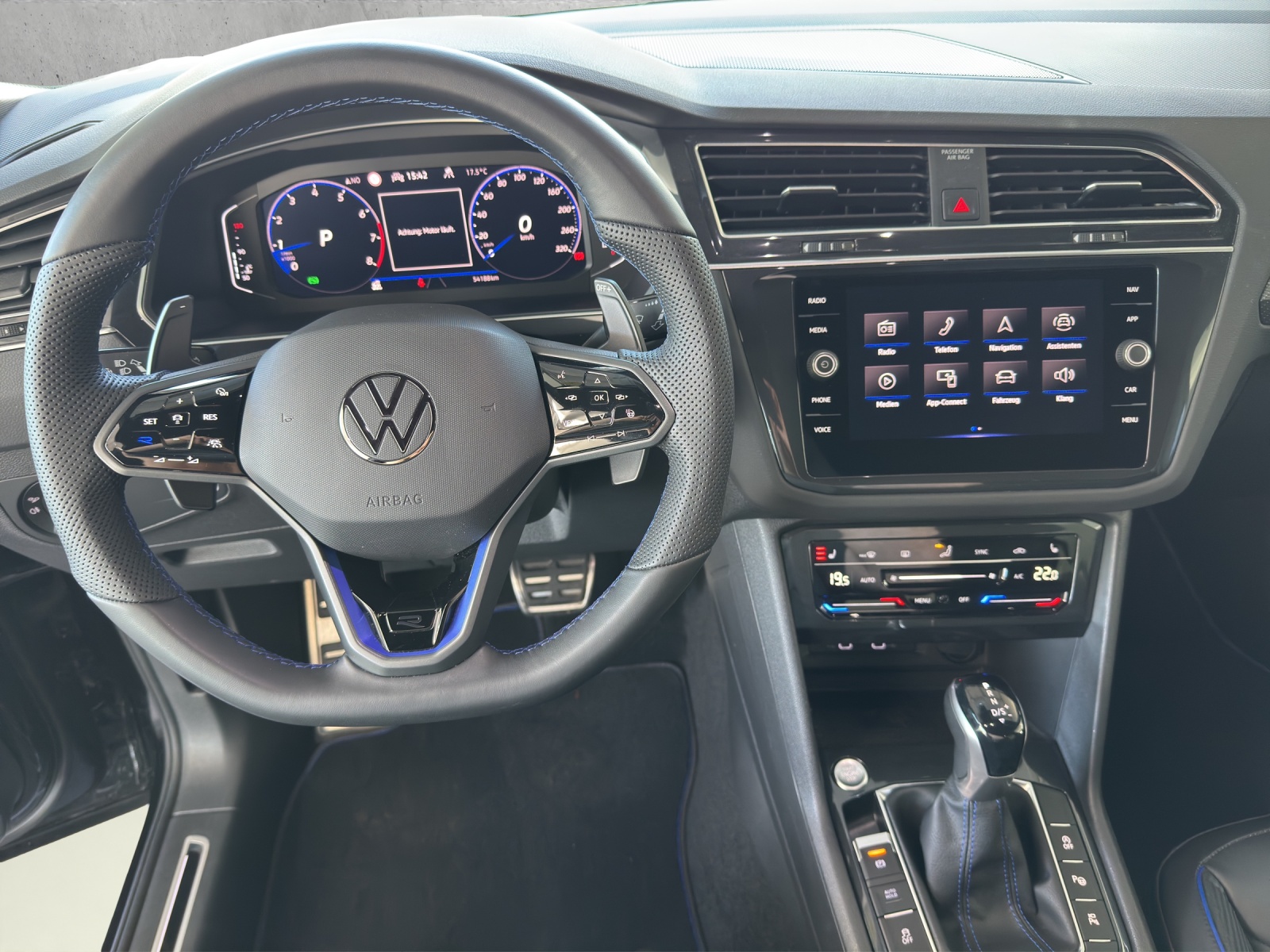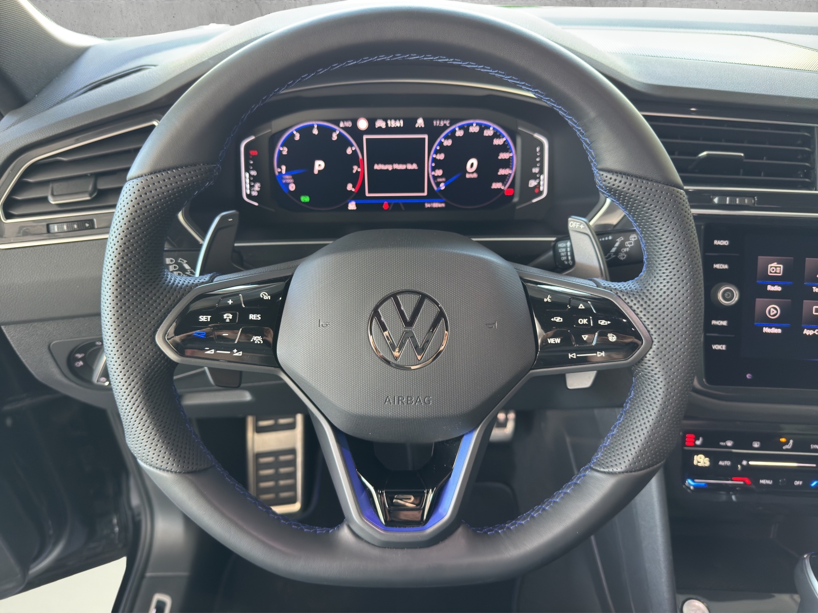 "Guide & Inform" und "Security & Service Plus" inkl. Notruffunktion 12-V-Steckdose an der Mittelkonsole vorne und im Gepäckraum 3 Dreipunkt-Automatiksicherheitsgurte hinten Airbag: Airbag für Fahrer und Beifahrer mit Beifahrerairbag-Deaktivierung Airbag: Knieairbag auf Fahrerseite Airbag: Kopfairbagsystem inkl. Seitenairbags vorne Ambientebeleuchtung 30-farbig Assist: Automatische Distanzregelung ACC Assist: Elektronische Parkbremse inkl. Auto-Hold-Funktion Assist: Elektronisches Stabilisierungsprogramm mit Gegenlenkunterstützung Assist: Fahrerassistent "Travel Assist" Assist: Front Assist mit City-Notbremsfunktion Assist: Multifunktionskamera Assist: Müdigkeitserkennung Assist: ParkPilot, Park Distance Control vorne und hinten Assist: Spurhalteassistent Lane Assist Aussenspiegel elektrisch einklappbar mit Bodenbeleuchtung und Beifahrerspiegelabsenkung Aussenspiegel in Chrom matt Beide Make up-Spiegel beleuchtet Chromapplikationen am Spiegeleinstell-und am Fensterheberschalter Dachreling silber eloxiert Decor: Carbon Applikationen Diebstahlwarnanlage mit Innenraumüberwachung und Abschleppschutz Dreipunkt-Automatiksicherheitsgurte vorne mit Höheneinstellung und Gurtstraffer Einstiegsleisten vorn in Aluminium, beleuchtet Einstiegsleisten vorn in Aluminium, mit "R-Line"-Logo Fahrwerk: Adaptive Fahrwerksregelung DCC inkl. Fahrprofilauswahl mit "R"-Dämpfung vorne und hinten Frontscheibe in Wärmeschutzglas Garantie: VW Garantie: 12 Jahre Karosserie-Garantie gegen Durchrostung Garantie: VW Garantie: 2 Jahre ohne Kilometerbegrenzung (ab 1. Inv.) Getriebe: Sequentielles 7-Gang-Getriebe mit Automatikfunktion Heckspoiler im "R"-Styling in Wagenfarbe ISOFIX Kindersitzvorrichtung Innenspiegel automatisch abblendbar Klima: 3-Zonen Klimaanlage Air Care Climatronic inkl. Bedienteil hinten und Allergenfilter Kopfstützen vorne sicherheitsoptimiert, längs- und höheneinstellbar Lackierung: Pure White Uni-Lackierung Lackierung: Uni-Lackierung Lenkrad: Elektrische Lenksäulenverriegelung Lenkrad: Multifunktions-Sportlederlenkrad inkl. Touch-Bedienung und Schaltwippen Lenksäule mit Höhen- und Längseinstellung Licht: Fahrlichtschaltung automatisch, mit LED-Tagfahrlicht Licht: Fernlichtregulierung Light Assist Licht: IQ. Light - LED-Matrix Scheinwerfer Licht: LED-Rückleuchten, rot Licht: Leuchtweitenregulierung dynamisch, mit dynamischen Kurvenfahrlicht Licht: Nebelschlussleuchte Licht: Schlechtwetterlicht und Abbiegelicht Media: 1 USB-C-Ladebuchsen an der Mittelkonsole hinten Media: 2 USB-C Schnittstellen vorn Media: Digitaler Radioempfang DAB+ Media: Navigationssystem "Discover Media" inkl. "Streaming & Internet" Media: Telefonschnittstelle Media: We Connect - Kostenlos und ohne Laufzeitbeschränkung Media: We Connect Basisfunktionen - Kostenlos und ohne Laufzeitbeschränkung Media: We Connect Plus - Kostenlos und begrenzt auf eine Laufzeit von 3 Jahren Media: Wireless App-Connect Polster: Stoff-/Velours-Ausstattung Räder: Leichtmetallräder "Misano" 8.5 J x 20 Räder: Tire Mobility Set (12-Volt-Kompressor und Reifendichtmittel) Scheibenbremsen vorne und hinten in Blau Scheibenwaschdüsen beheizt Schlüsselloses Schliess- und Startsystem Schublade unter den Vordersitzen Seitenscheiben hinten und Heckscheibe abgedunkelt Servolenkung elektromechanisch, geschwindigkeitsabhängig geregelt Sitze: Kopfstützen vorne im Sitz integriert Sitze: Lendenwirbelstützen vorn Sitze: Mittelarmlehne vorn mit Ablagefach, höhen- und längsverstellbar Sitze: Rücksitzbank ungeteilt, Lehne geteilt umklappbar, verschieb- und klappbar Sitze: Top-Komfortsitze vorne Sitze: Vordersitze mit höheneinstellung Start-Stopp System mit Bremsenergie-Rückgewinnung Stossfänger in Wagenfarbe, im "R"-Styling Textilfussmatten vorne und hinten mit Ziernähten in Blau, vorn mir "R"-Logo Warnleuchte für Wischwasserstand Warnton und -leuchte für nicht angelegte Gurte vorne und hinten We Connect Plus mit einer Laufzeit von 3 Jahren Wegfahrsperre elektronisch Zierleisten aussen in Chrom