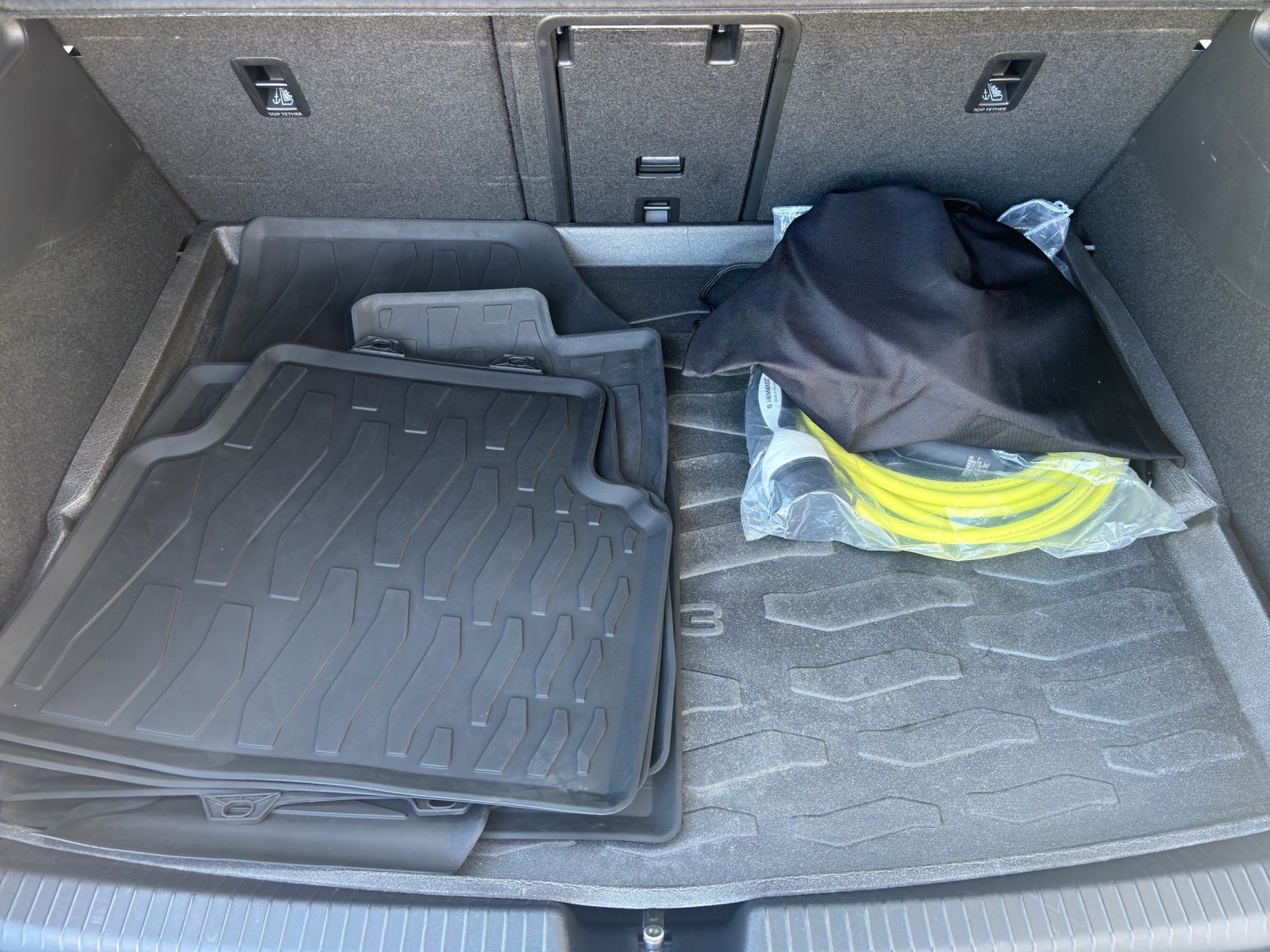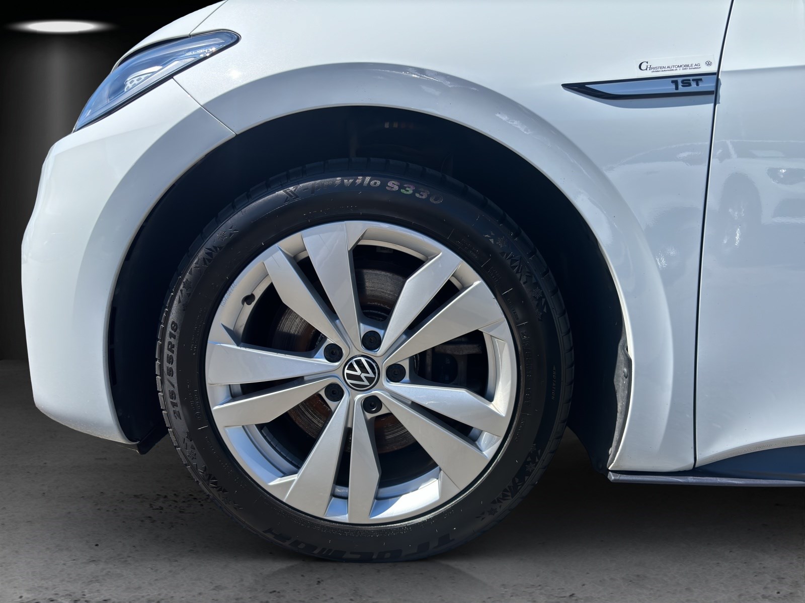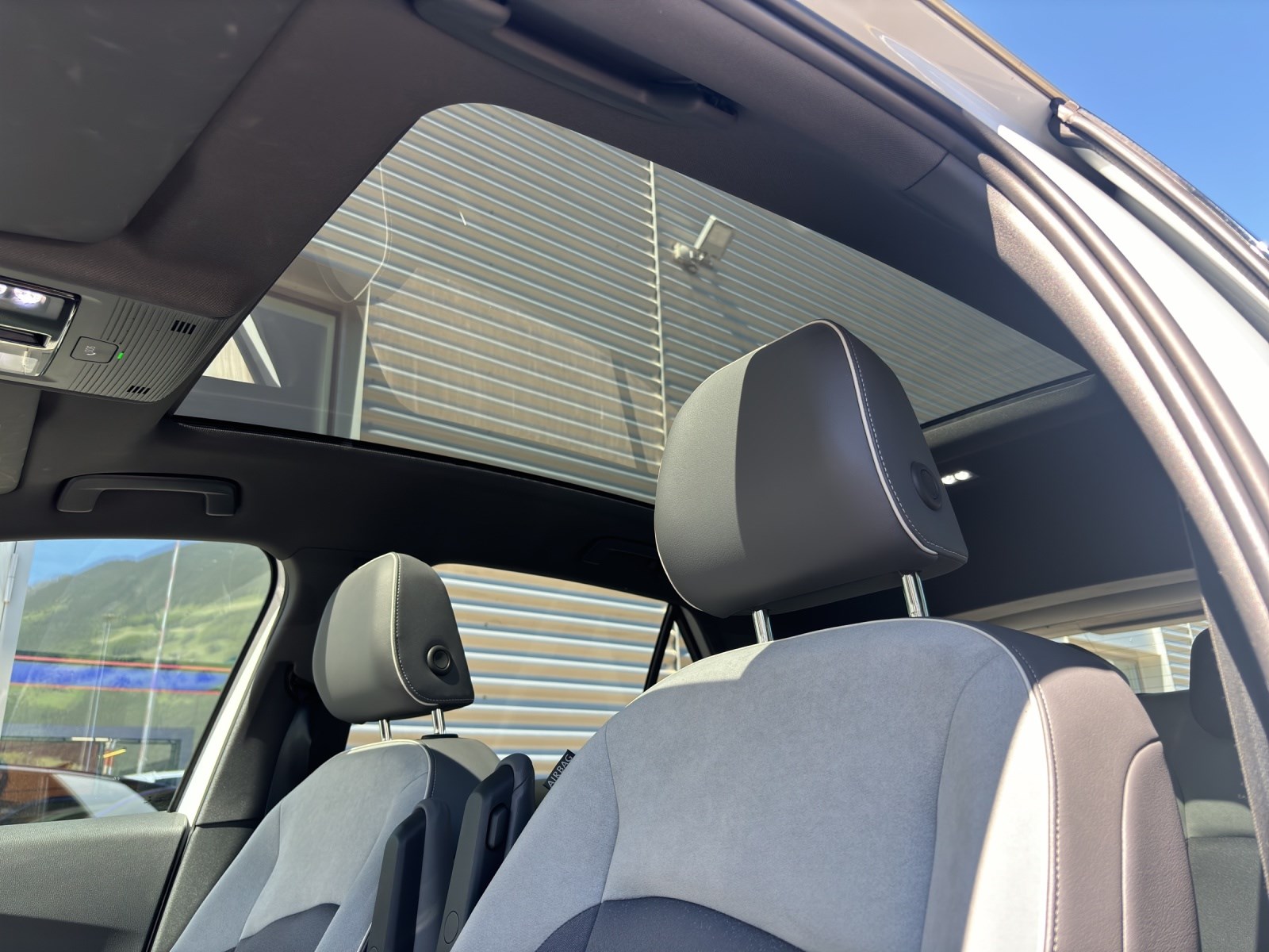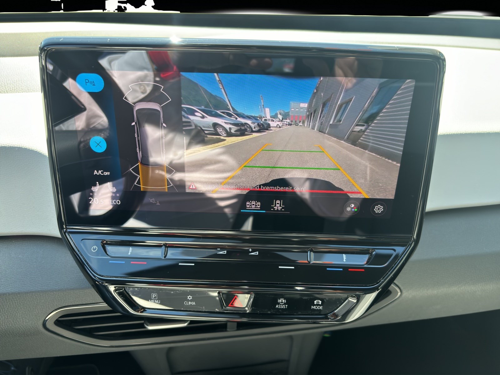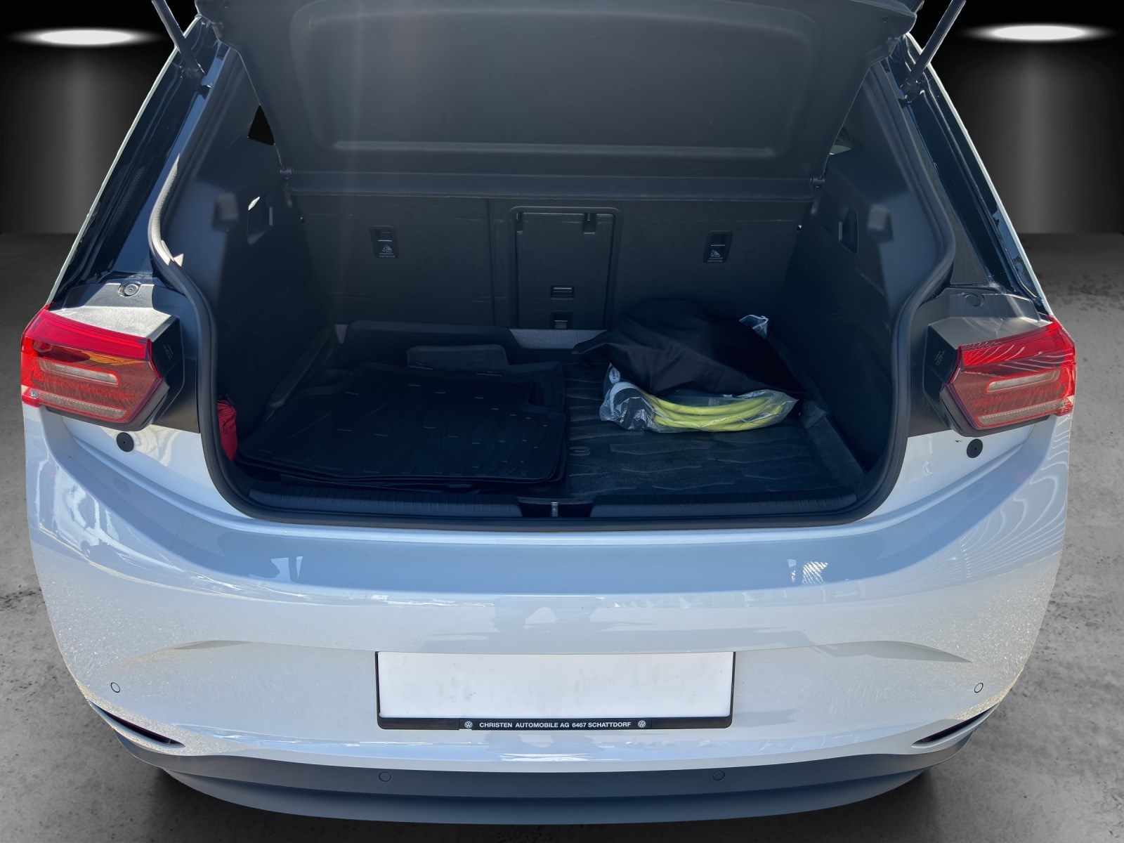 3-Punkt-Sicherheitsgurte auf allen Plätzen AC Batterieladung bis 11 kW Airbag: Airbag Beifahrer deaktivierbar Airbag: Airbag Fahrer und Beifahrer Airbag: Kopf- und Seitenairbags vorn, mit Center-Airbag Armlehne für Fahrer- und Beifahrersitz Assist: Ausweichunterstützung mit Abbiegeassistent Assist: Automatische Distanzregelung ACC Assist: Einparkhilfe vorne und hinten Assist: Fahrerassistenz ''Travel Assist'' Assist: Geschwindigkeitsbegrenzer Assist: Müdigkeitserkennung Assist: Proaktives Insassenschutzsystem Assist: Rückfahrkamera Rear View Assist: Spurhalteassistent Lane Assist Assist: Spurwechselassistent Side Assist Assist: Verkehrszeichenerkennung Augmented Reality Head-up-Display Aussenspiegel elektrisch einklappbar mit Beifahrerspiegelabsenkung Aussenspiegel rechts und links beheizbar und elektrisch verstellbar DC Batterieladung bis 100 kW Dekor: Einfassung des Infotainment-Displays und der zentralen Bedienelemente in Schwarz Elektronisches Stabilitäts-Programm ESP Getriebe: 1-Gang Getriebe automatisiert Heckscheiben-Wisch-/Waschanlage ISOFIX Kindersitzvorrichtung Innenspiegel automatisch abblendbar Klima: Klimatisierungsautomatik Climatronic Lackierung: Uni-Lackierung Ladekabel für Schweizer Haushaltssteckdose (bis zu 1,8 kW) Ladekabel für Wechselstrom-Ladestationen (bis zu 11 kW) Lenkrad: Lenkrad beheizbar Lenkrad: Multifunktionslenkrad in Leder Licht: Drittes Bremslicht Licht: Fernlichtregulierung Dynamic Light Assist Licht: LED-Matrix-Scheinwerfer mit automatischer Fahrlichtschaltung Licht: Nebelschlussleuchte Licht: Umfeldbeleuchtung mit Logo-Projektion Media: 2 USB-C Schnittstellen vorn und hinten Media: Navigationsfunktion Discover Pro Media: Radio mit 10-Zoll-Display und digitalem Radioempfang DAB+ Media: Telefonschnittstelle Media: Wireless App-Connect Mittelkonsole mit Ablagefach Pedalerie mit Aluminiumauflage Polster: Stoff-Ausstattung Regensensor für Scheibenwischer vorne Reifendruck-Kontrollanzeige Räder: 20''-Leichtmetallträder "Sanya" in Schwarz, Volkswagen R Schlüsselloses Schliess- und Startsystem Seitenscheiben hinten und Heckscheibe abgedunkelt Sitze: ISOFIX-Befestigungspunkte für Kindersitz an den äusseren Rücksitzen Sitze: Interieur Style "Plus" Sitze: Kopfstützen vorne und hinten Sitze: Lendenwirbelstützen vorn, pneumatisch einstellbar, mit Massagefunktion Sitze: Rücksitzbank ungeteilt, Lehne geteilt umklappbar Sonnenblende Fahrer und Beifahrerseite Türgriffmulden beleuchtet Wegfahrsperre elektronisch Wärmepumpe zur Reichweitenoptimierung