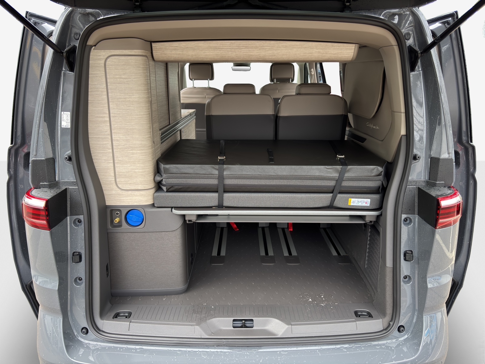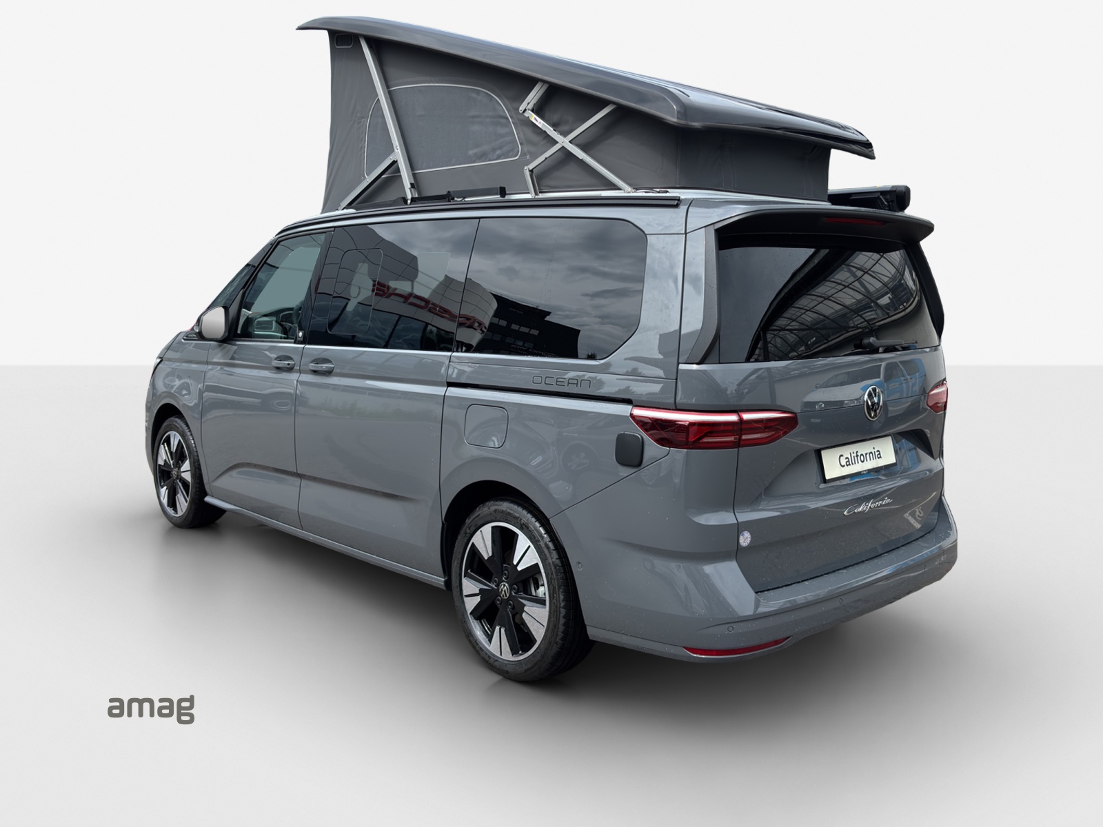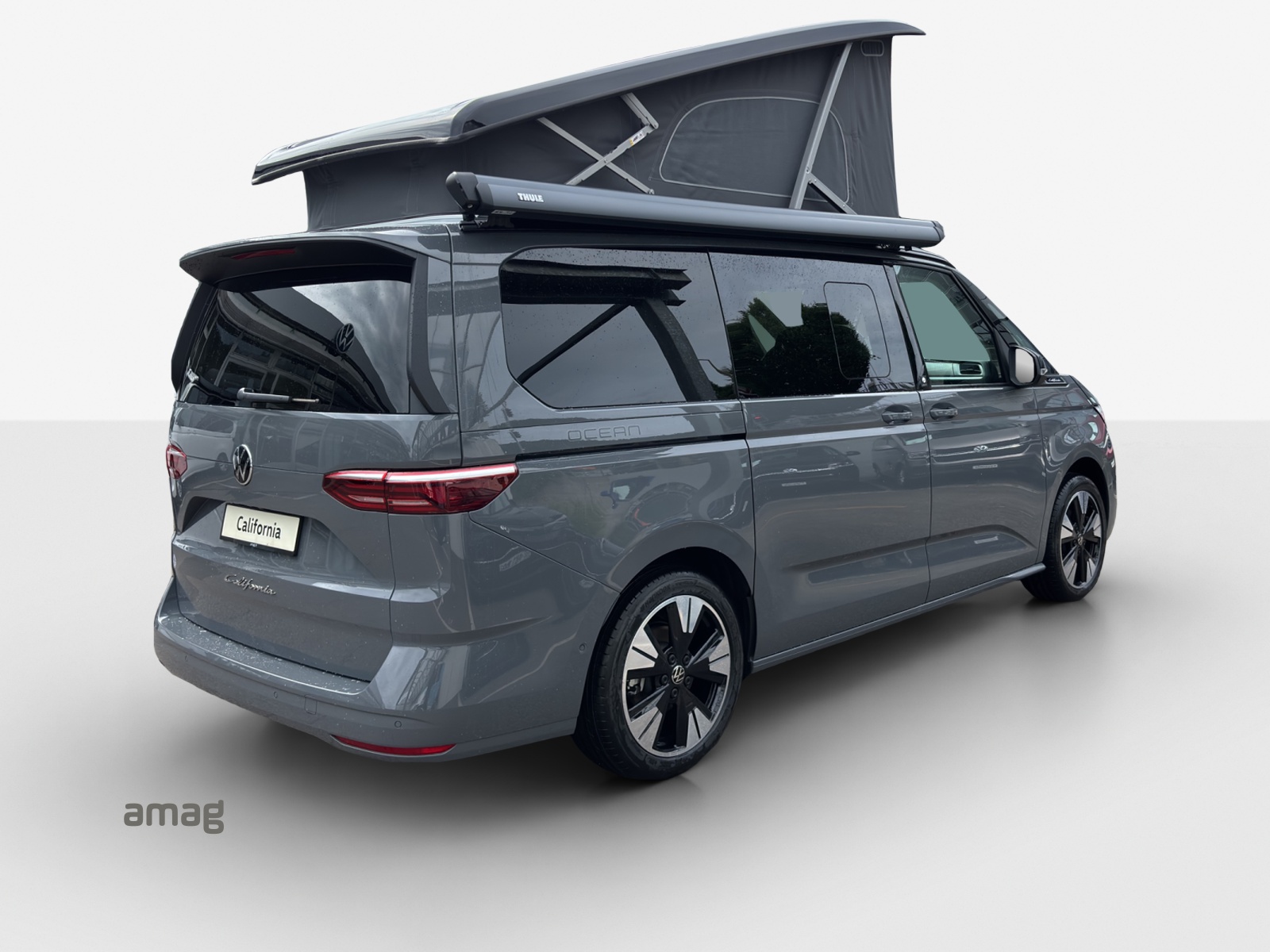17" Scheibenbremsen vorn und 16" Scheibenbremsen hinten Adaptive Fahrwerksregelung DCC mit Standartfahrwerk Ambientebeleuchtung 30-farbig, inklusive Fussraumbeleuchtung für die 2. Sitzreihe, Anhängevorrichtung anklappbar, mit elektrischer Entriegelung Aufstelldach elektrohydraulisch und Diebstahlalarmanlage mit Innenraumüberwachung Innenbeleuchtung an Aufstelldach, Heckklappe und Sommerküche (Ocean) Klima: Camper Standheizung für Dauerbetrieb und Standheizung für Frontscheibenenteisung Leiste zwischen den Scheinwerfern hinterleuchtet Lenkrad: Multifunktions-Lederlenkrad mit Schaltwippen, beheizbar Markisenschiene beidseitig in schwarz, Markise in schwarz, rechts Media: Mobiltelefon-Schnittstelle "Comfort" mit induktiver Ladefunktion Media: Navigationssystem "Discover Media" Polster: Bi-Color Sitzbezüge, Sitzmittelbahnen in Mikrovlies "ArtVelours" Räder: Leichtmetallréder "Halmstad" 8J x 19, in Schwarz, Oberfléche glanzgedreht Umfeldbeleuchtung im Türbereich mit Logoprojektion der Modell Silhouette Zentralverriegelung mit schlüssellosem Schliess- und Startsystem "Keyless Advanced",