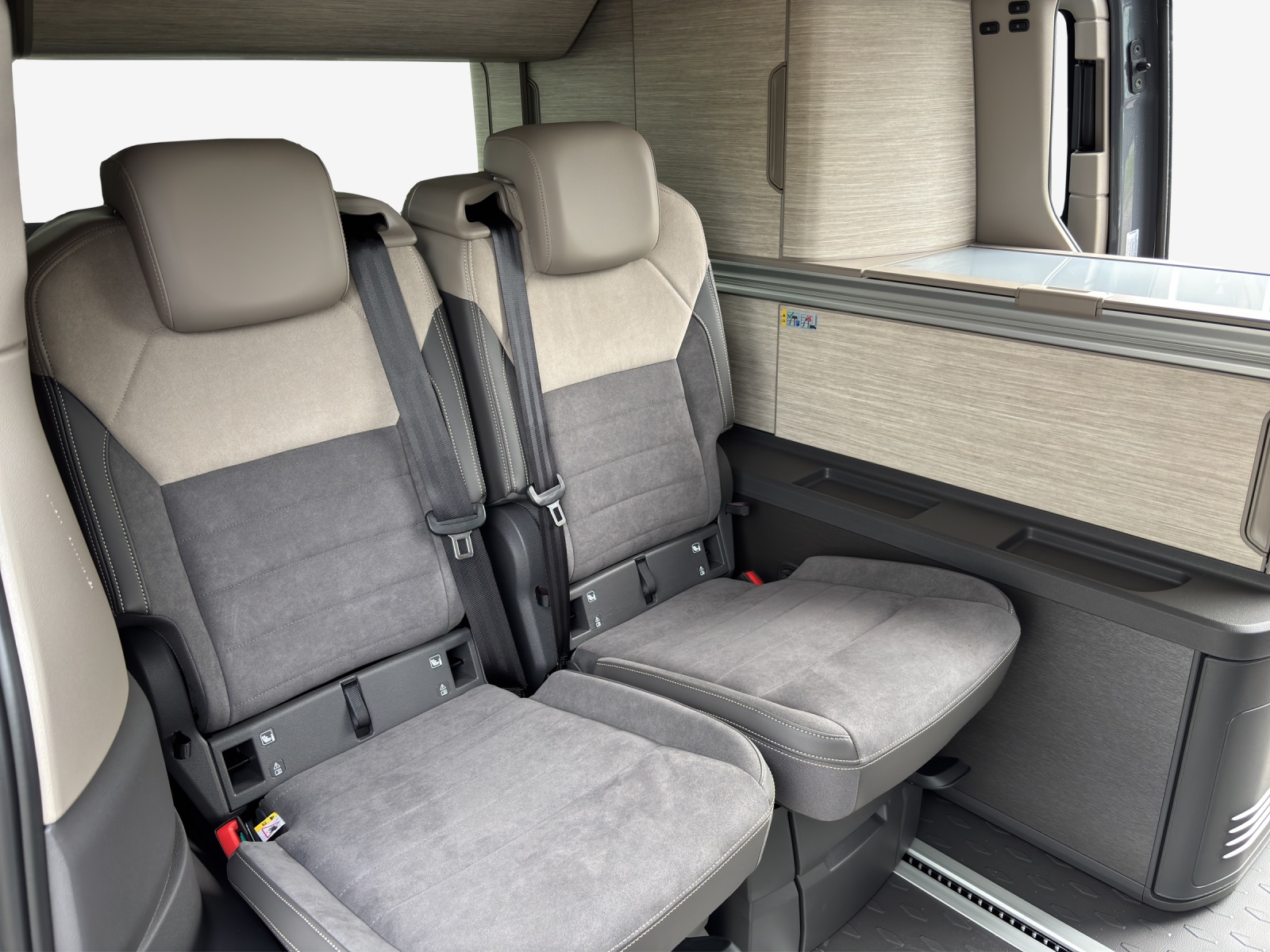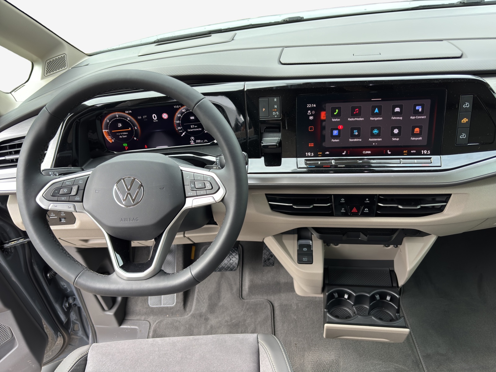 16" Scheibenbremsen vorn und 16" Scheibenbremsen hinten 230-Volt-Einspeisung mit Ladefunktion für Fahrzeugbatterien und 230-Volt- Steckdose im Innenraum-CH Airbag: Airbag für Fahrer- und Beifahrer Airbag: Seiten- und Kopfairbags vorn Assist: Ablenkungs- und Müdigkeitserkennung Assist: Ausweichunterstützung und Abbiegeassistent Assist: Automatische Distanzregelung mit Stop & go Assist: Kreuzungsassistent Assist: Notbremsassistent Front Assist mit Fussgänger- und Radfahrererkennung Assist: Speedlimiter, mit Intelligent Speed Assist Assist: Spurhalteassistent "Lane Assist" Assist: Spurwechselassistent "Side Assist" inkl. "Blind Spot Detection", Assist: Verkehrszeichenerkennung Aufstelldach manuell bedienbar, mit 3 Fenstern und einer Frontöffnung, Faltenbalg in Basalt Grey Aussenspiegelgehäuse in schwarz hochglanz Bordwerkzeug und Tire Mobility Set (in den Staufächern im Gepäckraum) Dekor: Dekor-Einlagen "Dark Silver Brushed" Dunkel eingefärbte Fenster im Fahrgastraum Elektrische Fensterheber vorne Elektronisches Stabilitäts-Programm Fahrwerk: Standardfahrwerk Garantie: 3 Jahre oder 100'000 km Garantie: Garantie gegen Karosserie-Durchrostung: 12 Jahre Garantie: Garantie gegen Lackmängel: 3 Jahre Garantie: VW Anschlussgarantie (2+3 Jahre, max. 200'000km) Garantie: VW Garantie: 2 Jahre ohne Kilometerbegrenzung (ab 1. Inv.) Geschränk im Dekor Graphite Grey mit Anschluss für Aussendusche Getriebe: 7-Gang-Getriebe Automatik Handschuhfach mit Beleuchtung Heckklappe mit Zuziehhilfe Innenbeleuchtung an Aufstelldach, Heckklappe und Sommerküche (Ocean) Klima: Camper Standheizung für Dauerbetrieb und kraftstoffbetriebene Zusatzheizung Kunststoffboden im Fahrgast-/Laderaum Lackierung: Uni-Lackierung Leiste zwischen den Scheinwerfern Schwarz glänzend lackiert Lenkrad: Leder-Multifunktionslenkrad mit Bedienung für Radio und Telefon und Schaltwippen Licht: LED-Rückleuchten, rot Markisenschiene beidseitig in schwarz Media: 2 USB-C-Schnittstellen vorn, 4 USB-C-Ladebuchsen im Fahrgastraum Media: App-Connect inklusive App-Connect, Wireless für Apple CarPlay Media: DAB+ (Digital Audio Broadcasting) Media: Digital Cockpit Pro Media: Mobiltelefon-Schnittstelle Media: Radio"Ready 2 Discover" mit 10" Touch-Farbdisplay Ohne Multifunktions-Mitteltisch Polster: Bi-Color Sitzbezüge in Stoff, Dessin "Mélange" Räder: 4 Leichtmetallräder "Dundrod" 6,5 J x 17, in Silber Räder: Radmittenabdeckungen für Leichtmetallräder Räder: Reifen 235/55 R 17 103H, rollwiderstandsoptimiert Räder: Reifendruck-Kontrollanzeige Schiebefenster mit Fliegengitter im Fahrgastraum vorne links Schiebefenster mit Fliegengitter im Fahrgastraum vorne rechts Schubladen unter den äusseren Sitzen im Fahrerraum und Fahrgastraum und 2 Abfallbehälter Servoschliessung für Heckklappe Sitze: 2 Einzelsitze mit integriertem Gurt und Schlafauflage Sitze: Armlehnen für Drehsitze Fahrer- und Beifahrer beidseitig, mit elektrischer Lendenwirbelstütze Sitze: Drehsitz im Fahrerhaus rechts Sitze: Drehsitz im Fahrerhaus, links Sitze: Sitzheizung für beide Sitze im Fahrerhaus Sommerküche mit Aussenklapptisch und 230-Volt-Steckdose zum Kochen, Sonnenblenden mit Spiegel, beleuchtet, Tickethalter auf der Fahrerseite Teppich-Fussmatten im Fahrerhaus Türen: Schiebetür links mit Zuziehhilfe Türen: Schiebetür rechts mit Zuziehhilfe Umfeldbeleuchtung im Türbereich Verdunkelungssystem: Verdunkelungsrollos und Thermomatten Vorbereitung Alcohol Interlock Warnton und -leuchte für nicht angelegte Gurte vorn und hinten Wegfahrsperre, elektronisch Wärmeschutzverglasung im Fahrerhaus Zentralverriegelung mit schlüssellosem Startsystem "Keyless Start" ohne Safe-Sicherung Zulassung für maximal 4 Sitzplätze