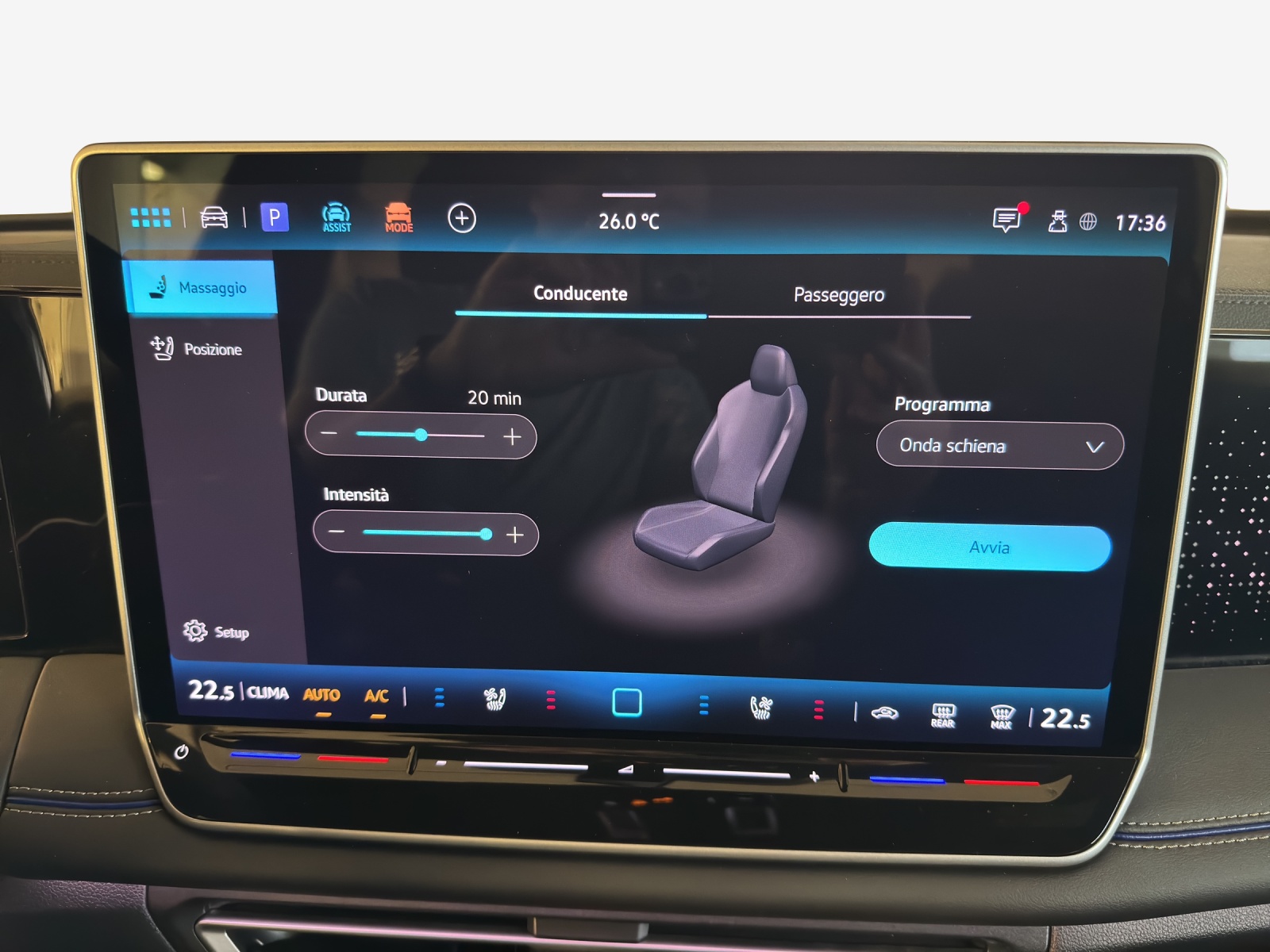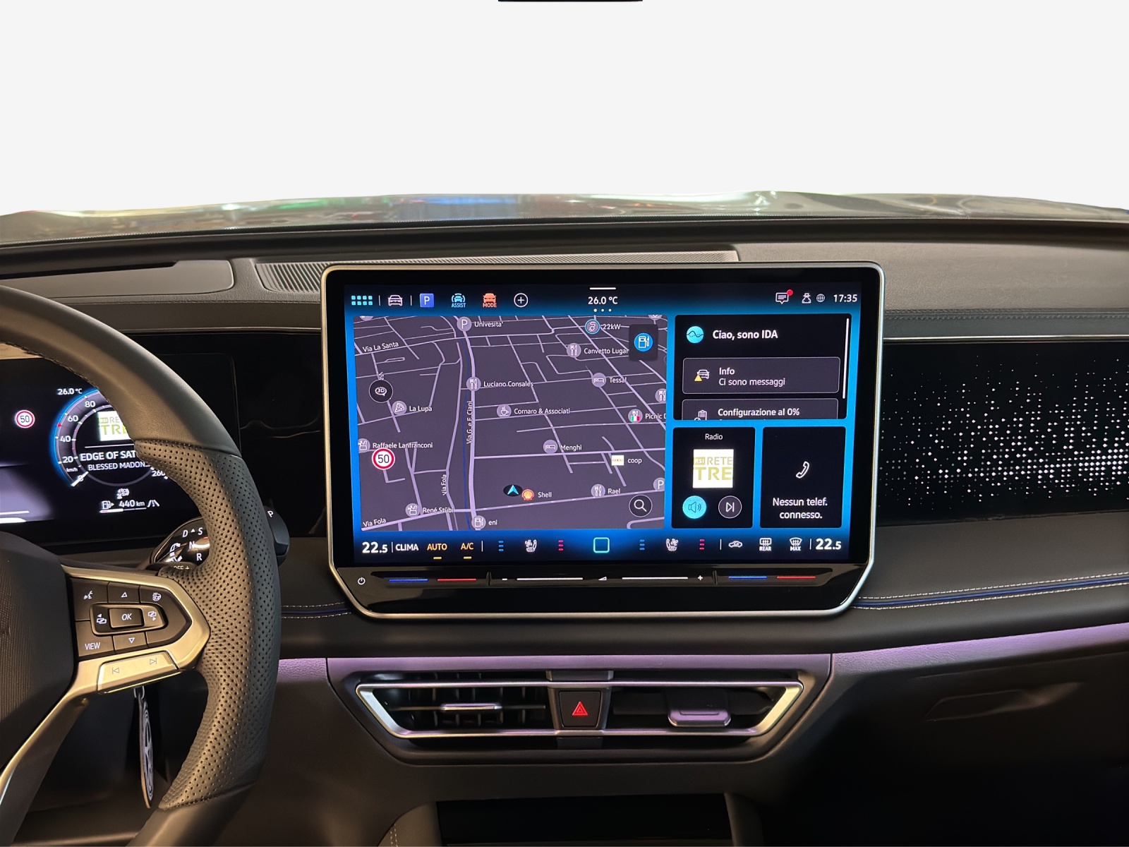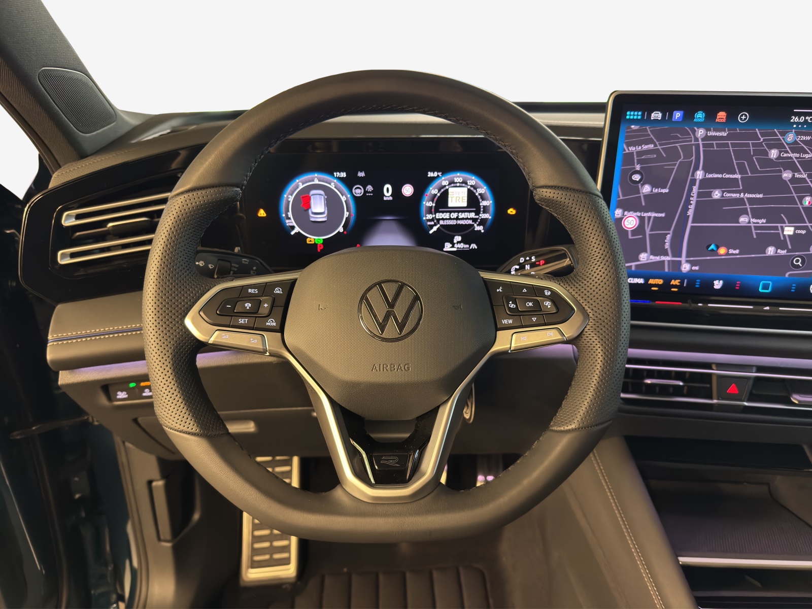 Dotazione di serie Airbag: Airbag per guidatore e passeggero anteriore con disattivazione airbag passeggero anteriore Airbag: Airbag per la testa e laterali anteriori e posteriori, incluso airbag centrale Alzacristalli anteriori elettrici Applicazioni cromate sugli interruttori di regolazione degli specchietti Appoggiatesta posteriori 3 Assetto: Controllo adattivo del telaio DCC Pro con selezione del profilo di guida Assist: Assistente agli incroci Assist: Assistente al cambio di corsia Side Assist Assist: Assistente al parcheggio Park Assist Pro, compreso il sistema di ausilio Assist: Assistente alla frenata d’emergenza «Front Assist» con riconoscimento di pedoni e ciclisti Assist: Assistente di cambiamento d'archivio Lane Assist Assist: Controllo automatico della distanza ACC "stop&go" Assist: Freno di stazionamento elettronico con funzione Auto-Hold Assist: Freno multicollisione Assist: Programma elettronico di stabilizzazione con assistenza al controsterzo Assist: Riconoscimento die segnali stradali Assist: Rilevamento di distrazione e fatica Assist: Telecamera di retromarcia Rear View Assit: Telecamera multifunzionale Attrezzi di bordo e martinetto Barre sul tetto color argento anodizzato Bracciolo centrale anteriore Chiusura centralizzata con telecomando Cicalino e spia di avvertimento per le cinture anteriori e posteriori non allacciate Cinture di sicurezza automatiche a 3 punti posteriori, per i sedili posteriori esterni con tendicing Cinture di sicurezza automatiche a tre punti anteriori con regolazione in altezza e pretensionatori Clima: Climatizzatore Air Care Climatronic Decor: Intarsi "R-Line" per il quadro strumenti, la console centrale Freni a disco anteriori e posteriori Funzione di frenata di svolta e assistente per manovre di scansamento Garanzia: Garanzia VW 3 anni di garanzia sulla vernice Garanzia: Garanzia VW: 12 anni di garanzia contro la ruggine Garanzia: Garanzia VW: 2 anni senza limite di chilometraggio Illuminazione ambientale a 30 colori nel quadro strumenti e nelle portiere Lavare il display del livello dell'acqua Limitatore di velocità con controllo predittivo Listelli sottoporta anteriori in alluminio Luce: Controllo dinamico della gamma dei fari con luci dinamiche di svolta Luce: Dispositivo assistenza abbaglianti "Light Assist" Luce: Luce per il maltempo e luce di svolta Luce: Luci di marcia automatiche, con luci diurne a LED e funzioni "Coming home" e "Leaving home" Luce: Luci posteriori a LED 3D Luce: Proiettori LED Plus Luce: Retronebbia posteriore, luce posteriore su entrambi i lati Lunotto posteriore riscaldabile Media: 2 interfacce USB-C nella parte anteriore, potenza di ricarica fino a 45 W Media: App-Connect senza fili per Apple CarPlay e Android Auto Media: Digital Cockpit Pro, quadro strumenti digitale multicolore, vari profili info selezionabili, Media: Funzioni di base di We Connect - gratuite e senza limitazioni di termine Media: Preparato per We Connect / VW Connect e We Connect Plus / VW Connect Plus Media: Ricezione radiofonica digitale DAB+ Media: Servizi online con OCU Media: Sistema di infotainment Ready 2 Discover con display da 32 cm (12,9 pollici) Occhielli di fissaggio ISOFIX per seggiolini (sui sedili posteriori esterni e sul sedile anteriore Parabrezza in vetro atermico Paraurti in tinta con la carrozzeria, in stile R-Line Pedali in acciaio spazzolato Piano di carico regolabile in altezza Presa da 12 V sulla consolle centrale posteriore e nel bagagliaio Retrovisori esterni e maniglie in colore della carrozzeria Route: Cerchi in lega "Leeds" da 20 pollici Route: Indicatore di controllo della pressione dei pneumatici Route: Tire Mobility Set: compressore da 12 volt e sigillante per pneumatici Sedili: Poggiatesta anteriori integrati nei sedili Sedili: Sedile posteriore a panca spostabile longitudinalmente, Sedili: Sedili anteriori comfort sportivi, pannelli centrali dei sedili anteriori Sedili: Sedili anteriori con funzione massaggio Sedili: Sedili anteriori regolabili in altezza, sedile ergoActive sul lato del conducente Sedili: Supporti lombari anteriori regolabili pneumaticamente Senza cassetti sotto i sedili anteriori Servosterzo elettromeccanico, regolato in base alla velocità Sistema start-stop con recupero dell’energia di frenata Specchietti di cortesia illuminati nelle alette parasole Specchietti retrovisori esterni regolabili, riscaldati e ripiegabili elettricamente Specchietto retrovisore interno con antiabbagliamento automatico Striscia illuminata tra i fari e le rientranze delle maniglie delle portiere Tappetini in tessuto anteriori e posteriori Verniciatura: Colori unita Versione non fumatori: vano portaoggetti anteriore e presa da 12 V Vetri atermici verdi, laterali e posteriore Volante: Piantone sterzo regolabile in altezza e lunghezza Volante: Volante sportivo multifunzionale in pelle con palette del cambio incluse