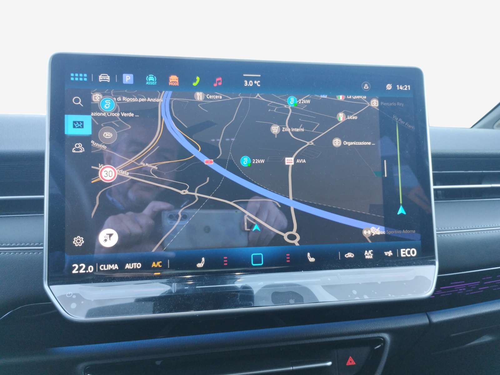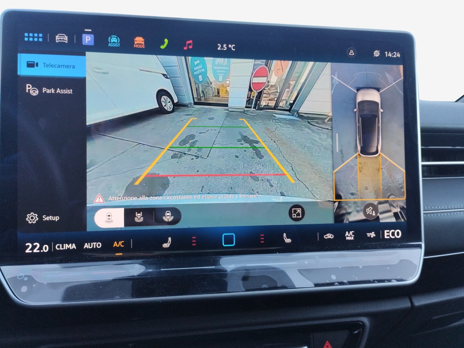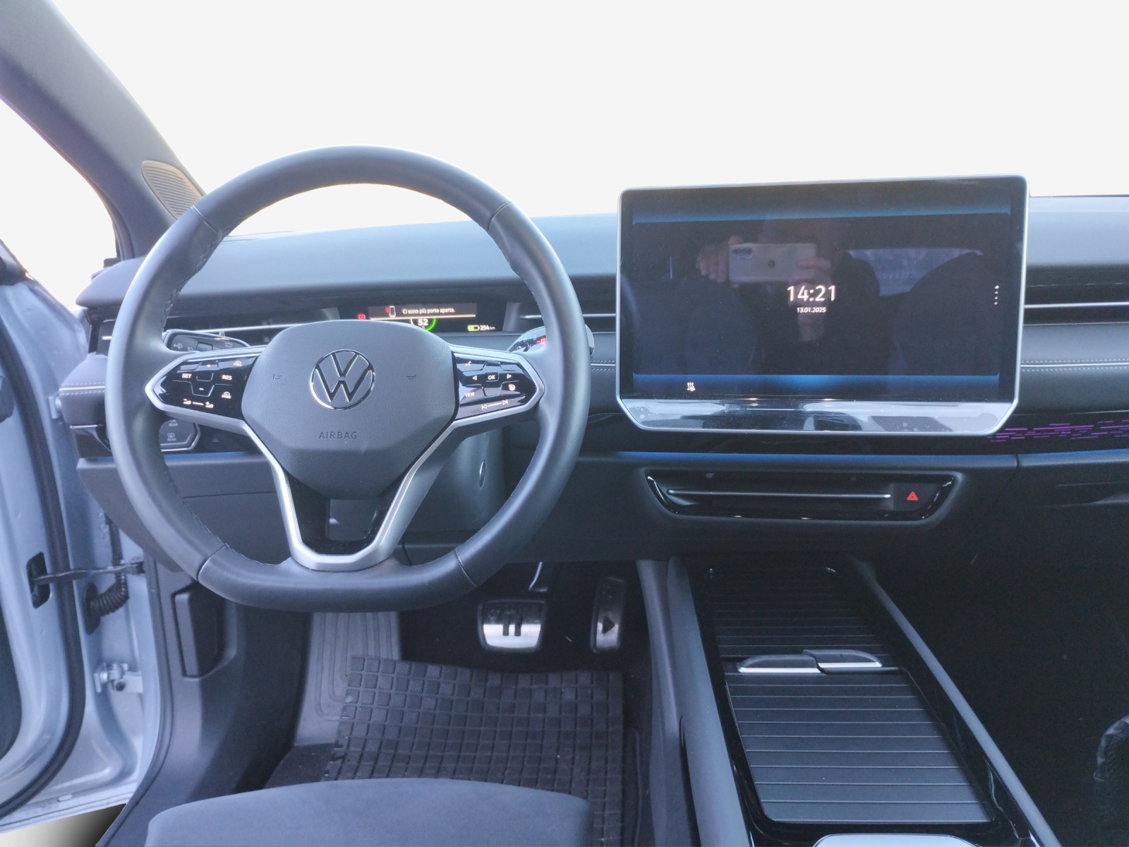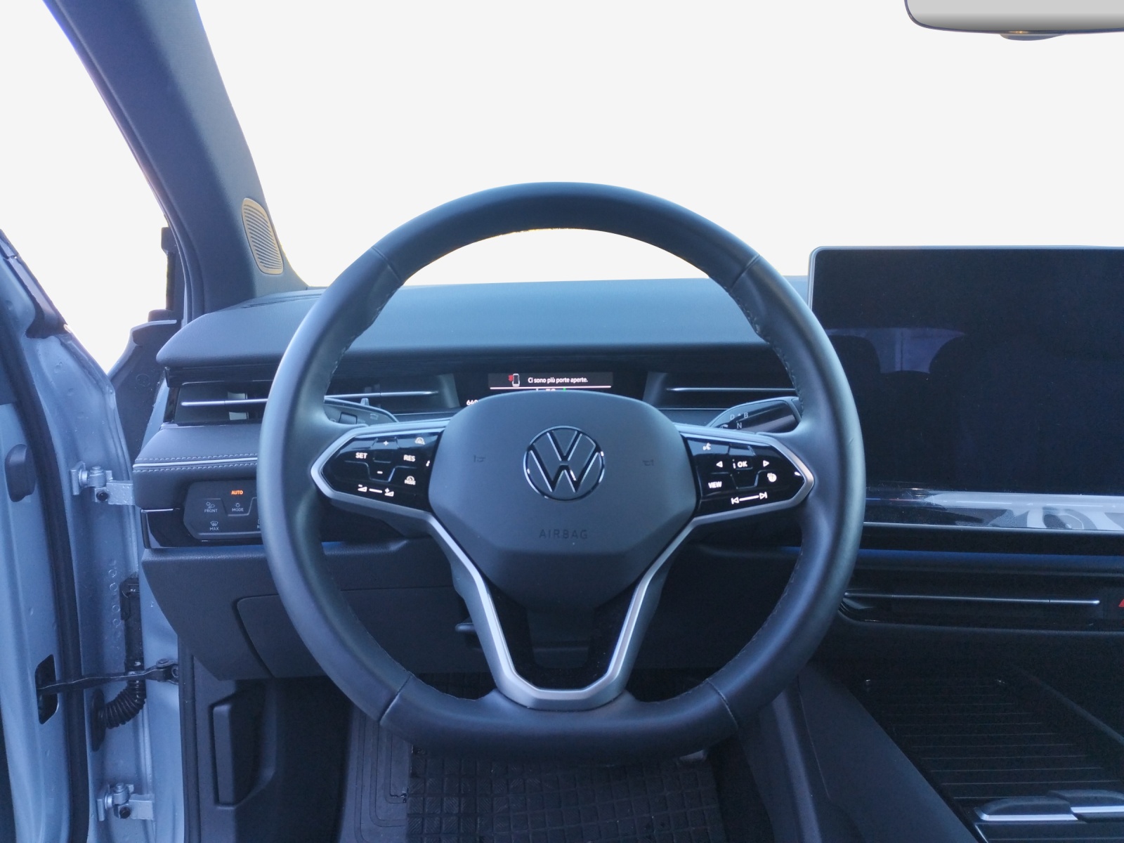Dotazione di serie 3 appoggiatesta posteriore Airbag: Airbag per guidatore e passeggero anteriore con disattivazione airbag passeggero anteriore Airbag: Sistema di airbag per la testa per i passeggeri anteriori e posteriori incl. airbag laterali Alloggiamento dello specchietto retrovisore esterno verniciato di nero Alzacristalli elettrici anteriori e posteriori Assist: ACC controllo automatico a distanza fino a 210 km/h Assist: Assistente alla frenata d’emergenza «Front Assist» con riconoscimento di pedoni e ciclisti Assist: Assistente per l’uscita dai parcheggi e il cambio di corsia Side Assist e avviso di uscita Assist: Riconoscimento die segnali stradali Assist: Rilevamento di distrazione e fatica Assist: Sistema di chiamata di soccorso eCall Assist: Sistema di protezione degli occupanti proattivo Barre portapacchi in nero Cambio: Cambio a 1 marcia automatizzato Carica della batteria AC fino a 11 kW Cavo di ricarica per stazioni di ricarica AC (fino a 11 kW) Chiusura centralizzata con telecomando Cinture di sicurezza anteriori automatiche a 3 punti con regolazione in altezza e pretensionatori Cinture di sicurezza automatiche a 3 punti per i sedili posteriori esterni DC carica della batteria fino a 175 kW Display head-up con realtà aumentata ESP, programma stabilizzatore elettronico Freni a tamburo posteriori Funzione di frenata di svolta e assistente per manovre di scansamento Garanzia: Garanzia VW 3 anni di garanzia sulla vernice Garanzia: Garanzia VW: 12 anni di garanzia contro la ruggine Garanzia: Garanzia VW: 2 anni senza limite di chilometraggio Garanzia: Garanzia VW: 8 anni o 160.000 km di garanzia sulla batteria HV Impianto di allarme antifurto con controllo volumetrico e protezione antitraino Kit di pronto soccorso, triangolo d’emergenza e giubbotto ad alta visibilità Limitatore di velocità con controllo predittivo "Speedlimiter" Luce: Illuminazione ambientale con proiezione logo Luce: Luce fendinebbia posteriore Media: 2 interfacce USB-C nella parte anteriore e prese di ricarica USB-C nella console centrale Media: App-Connect senza fili per Apple CarPlay e Android Auto Media: Assistente vocale IDA Media: Display HMI da 15 pollici Media: Preparato per We Connect / VW Connect e We Connect Plus / VW Connect Plus Media: Ricezione radiofonica digitale Occhielli di fissaggio ISOFIX per seggiolini (sui sedili posteriori esterni e sul sedile anteriore Pacchetto: Assistenzpaket 'IQ.Drive' Pacchetto: Pacchetto Comfort Pacchetto: Pacchetto esterno Pacchetto: Pacchetto interni Pedali in acciaio inossidabile, design "Play & Pause" Poggiatesta anteriori ottimizzati per la sicurezza Predisposizione Alcohol Interlock Route: Indicatore di controllo della pressione dei pneumatici Route: Set per la mobilita dei pneumatici; Compressore da 12 volt e sigillante per pneumatici Ruote: Cerchi in lega da 19 pollici Hudson Schienale del sedile posteriore suddiviso asimmetricamente, ribaltabile, con possibilità di carico Sedili anteriori riscaldabili Sedili: Sedili anteriori regolabili in altezza Servosterzo elettromeccanico, regolato in base alla velocità Sistema di chiusura e avviamento senza chiave Keyless Access con chiusura di sicurezza Specchietti di cortesia nelle alette parasole Specchietti retrovisori esterni regolabili, ripiegabili e riscaldabili elettricamente, con Specchietto retrovisore interno con antiabbagliamento automatico Tappetini in tessuto anteriori e posteriori Tappezzeria: Selezione del profilo di guida Ugelli lavavetro anteriori riscaldabili automaticamente Verniciatura: Verniciatura metallizzata Verniciatura: finitura uni "grigio pietra di luna"