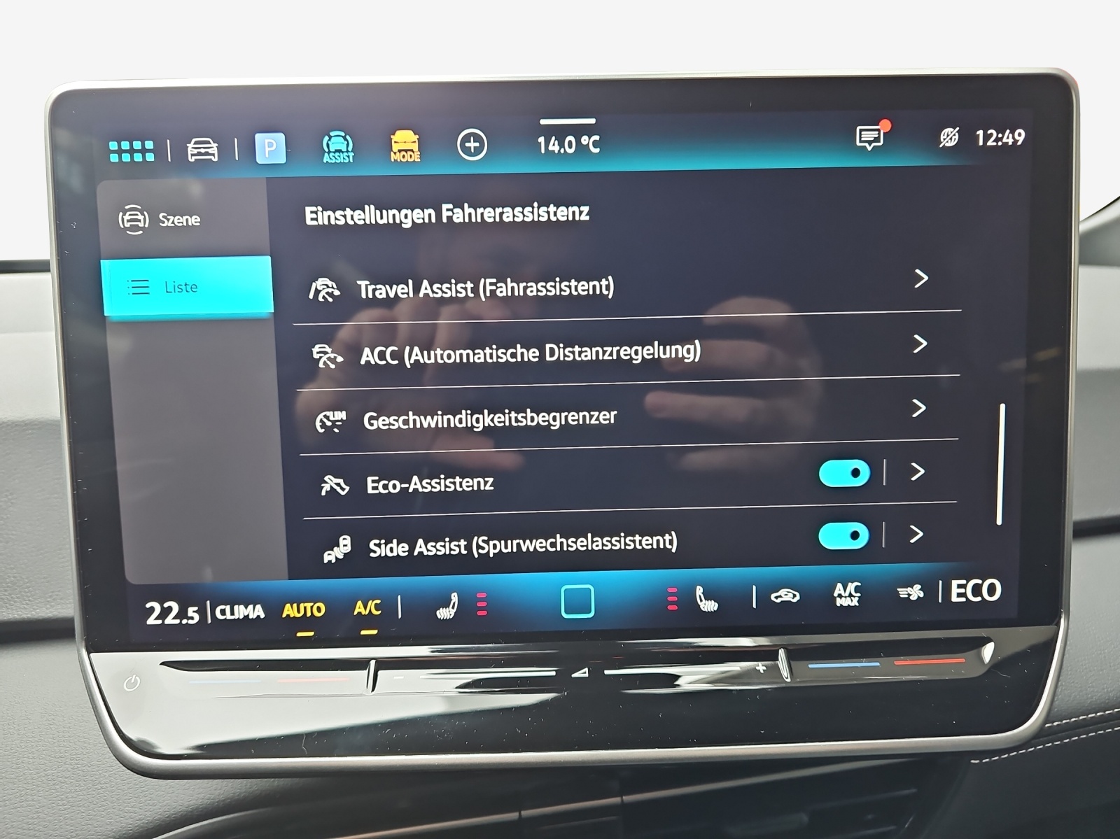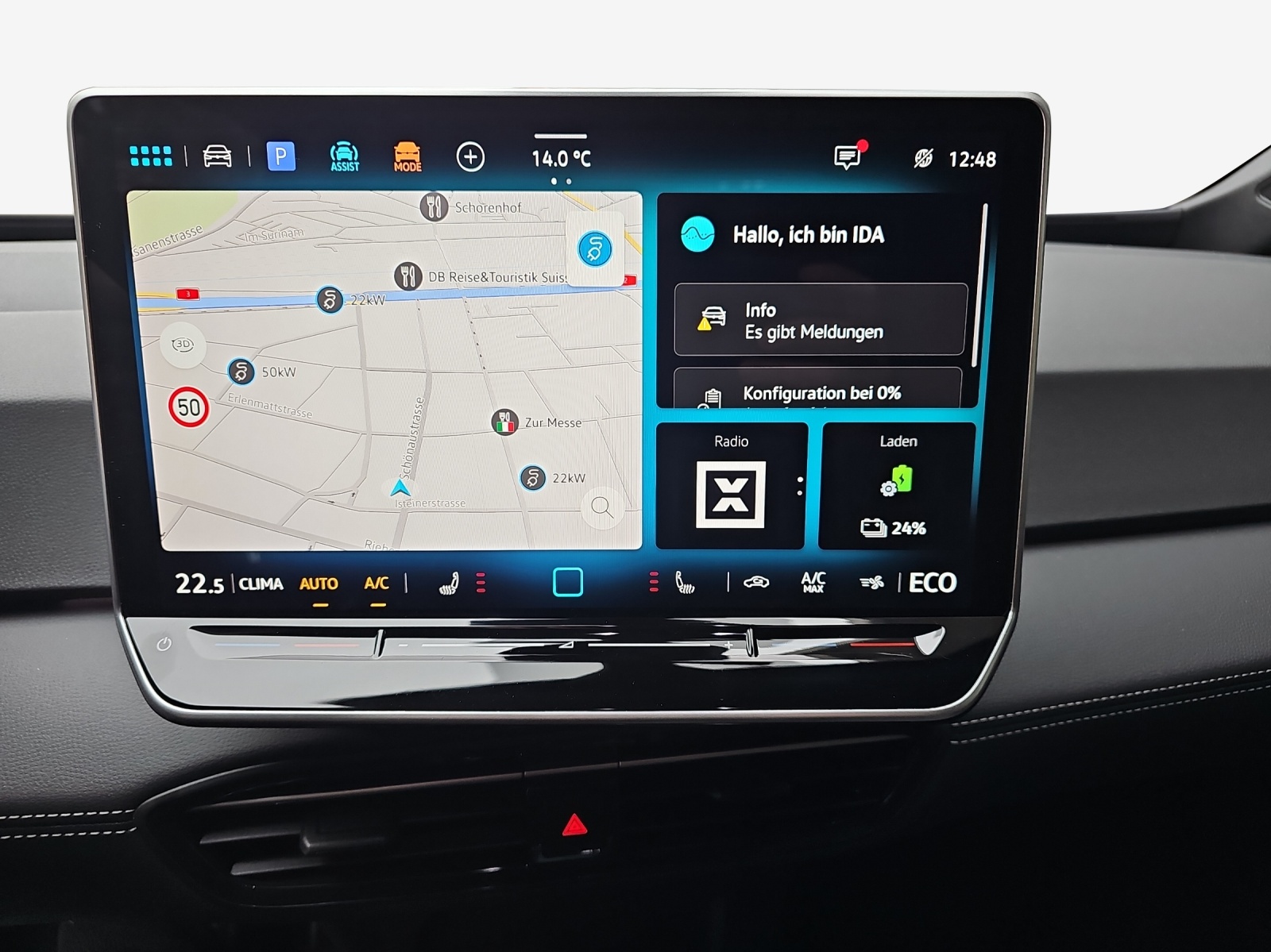 AC Batterieladung bis 11 kW Airbag: Airbag für Fahrer und Beifahrer mit Beifahrerairbag-Deaktivierung Airbag: Kopf- und Seitenairbags vorn, mit Center-Airbag Ambientebeleuchtung, 10-farbig Armlehnen für beide Vordersitze Assist: Ausweichunterstützung mit Abbiegeassistent Assist: Automatische Distanzregelung ACC Assist: Müdigkeits- und Ablenkungserkennung Assist: Notbremsassistent "Front Assist" mit Fussgänger- und Radfahrererkennung Assist: Spurhalteassistent Lane Assist Assist: Verkehrszeichenerkennung Aussenspiegel elektrisch einstell-, anklapp- und beheizbar, mit Beifahrerspiegelabsenkung und Memory DC Batterieladung bis 165 kW Dach in Absetzfarbe Schwarz Dreipunkt-Automatiksicherheitsgurte vorn, mit Gurtstraffer Einfassung des Infotainment-Displays und der zentralen Bedienelemente inkl. Lenkrad in Schwarz Elektrische Fensterheber vorne Fahrwerk: Fahrprofilauswahl Garantie: VW Garantie 3 Jahre Lack-Garantie Garantie: VW Garantie: 12 Jahre Karosserie-Garantie gegen Durchrostung Garantie: VW Garantie: 2 Jahre ohne Kilometerbegrenzung Garantie: VW Garantie: 8 Jahre oder 160’000 km Garantie auf HV-Batterie ISOFIX-Halteösen für Kindersitze auf dem äusseren Rücksitzen sowie auf dem Beifahrersitz Lackierung: Metallic-Lackierung Ladekabel für Wechselstrom-Ladestationen (bis zu 11 kW) Licht: Umfeldbeleuchtung mit Logo-Projektion Media: 2 USB-C Schnittstellen vorn, 2 USB-C Ladebuchsen an der Mittelkonsole hinten Media: Digitaler Radioempfang DAB+ Media: Radio "Ready 2 Discover" mit 12.9-Zoll-Display, Streaming und Internet fähig Media: Sprachassistent IDA Media: Vorbereitet für We Connect / VW Connect & We Connect Plus / VW Connect Plus Media: Wireless App-Connect Mittelkonsole mit Rollo und beleuchtetem Ablagefach Pedale in Edelstahl, "Play & Pause"-Design Polster: Sitzbezüge in Stoff, Design "Taia" Räder: 18''-Leichtmetallräder "East Derry", Schwarz glanzgedreht Räder: Reifenkontrollanzeige Scheibenwischerintervallschaltung mit Regensensor Servolenkung elektromechanisch Sicherheitsinnenspiegel automatisch abblendbar Sitze: Fahrer- und Beifahrersitz mit Höheneinstellung, manuell Sitze: Rücksitzbank ungeteilt, Lehne geteilt umklappbar Sonnenblenden mit Spiegel, beleuchtet Verbandtasche, Warndreieck und Warnweste Warnton und -leuchte für nicht angelegte Gurte vorne und hinten Wegfahrsperre elektronisch Zentralverriegelung mit Funkfernbedienung