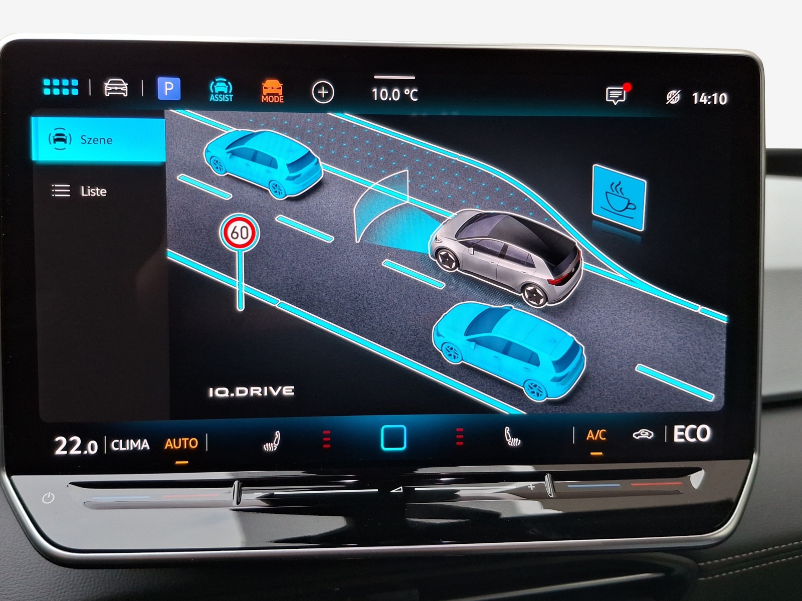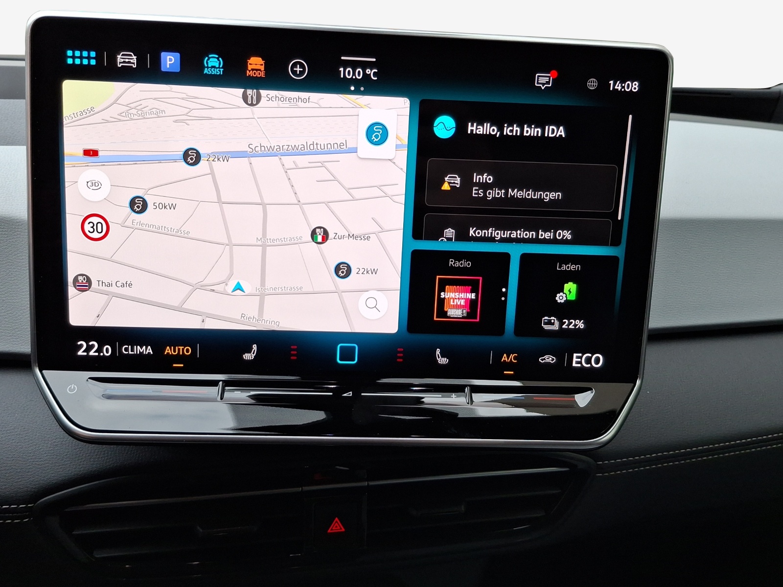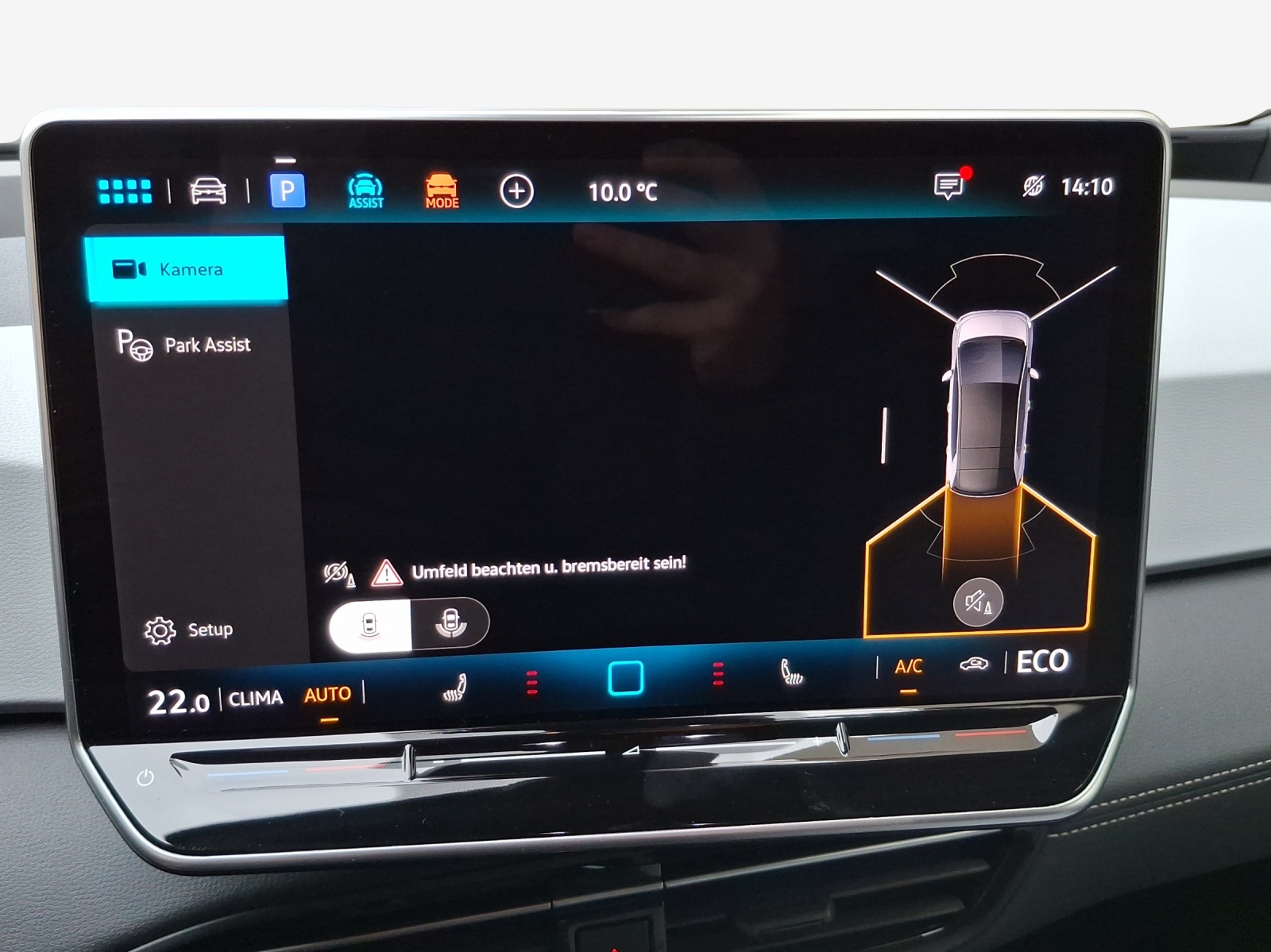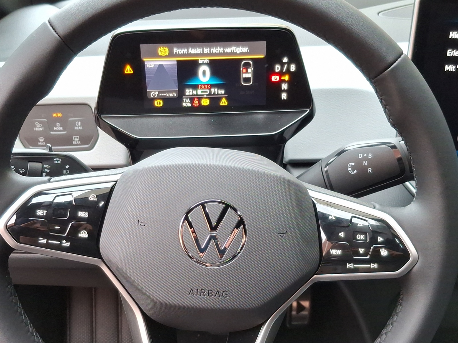 AC Batterieladung bis 11 kW Airbag: Airbag für Fahrer und Beifahrer mit Beifahrerairbag-Deaktivierung Airbag: Kopf- und Seitenairbags vorn, mit Center-Airbag Ambientebeleuchtung, 10-farbig Armlehnen für beide Vordersitze Assist: Ausweichunterstützung mit Abbiegeassistent Assist: Automatische Distanzregelung ACC Assist: Müdigkeits- und Ablenkungserkennung Assist: Notbremsassistent "Front Assist" mit Fussgänger- und Radfahrererkennung Assist: Spurhalteassistent Lane Assist Assist: Verkehrszeichenerkennung Aussenspiegel elektrisch einstell-, anklapp- und beheizbar, mit Beifahrerspiegelabsenkung und Memory DC Batterieladung bis 165 kW Dach in Absetzfarbe Schwarz Dreipunkt-Automatiksicherheitsgurte vorn, mit Gurtstraffer Einfassung des Infotainment-Displays und der zentralen Bedienelemente inkl. Lenkrad in Schwarz Elektrische Fensterheber vorne Fahrwerk: Fahrprofilauswahl Garantie: VW Garantie 3 Jahre Lack-Garantie Garantie: VW Garantie: 12 Jahre Karosserie-Garantie gegen Durchrostung Garantie: VW Garantie: 2 Jahre ohne Kilometerbegrenzung Garantie: VW Garantie: 8 Jahre oder 160000 km Garantie auf HV-Batterie ISOFIX-Halteösen für Kindersitze auf dem äusseren Rücksitzen sowie auf dem Beifahrersitz Lackierung: Metallic-Lackierung Ladekabel für Wechselstrom-Ladestationen (bis zu 11 kW) Licht: Umfeldbeleuchtung mit Logo-Projektion Media: 2 USB-C Schnittstellen vorn, 2 USB-C Ladebuchsen an der Mittelkonsole hinten Media: Digitaler Radioempfang DAB+ Media: Radio "Ready 2 Discover" mit 12.9-Zoll-Display, Streaming und Internet fähig Media: Sprachassistent IDA Media: Vorbereitet für We Connect /VW Connect & We Connect Plus / VW Connect Plus Media: Wireless App-Connect Mittelkonsole mit Rollo und beleuchtetem Ablagefach Pedale in Edelstahl, "Play & Pause"-Design Polster: Sitzbezüge in Stoff, Design "Taia" Räder: 18''-Leichtmetallräder "East Derry", Schwarz glanzgedreht Räder: Reifenkontrollanzeige Scheibenwischerintervallschaltung mit Regensensor Servolenkung elektromechanisch Sicherheitsinnenspiegel automatisch abblendbar Sitze: Fahrer- und Beifahrersitz mit Höheneinstellung, manuell Sitze: Rücksitzbank ungeteilt, Lehne geteilt umklappbar Sonnenblenden mit Spiegel, beleuchtet Verbandtasche, Warndreieck und Warnweste Warnton und -leuchte für nicht angelegte Gurte vorne und hinten Wegfahrsperre elektronisch Zentralverriegelung mit Funkfernbedienung