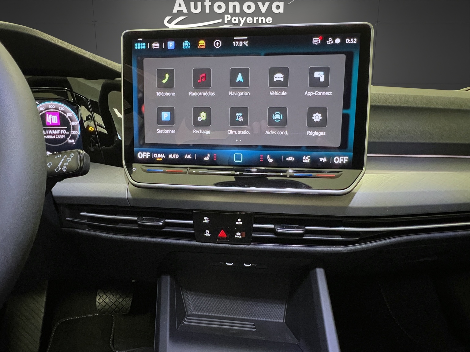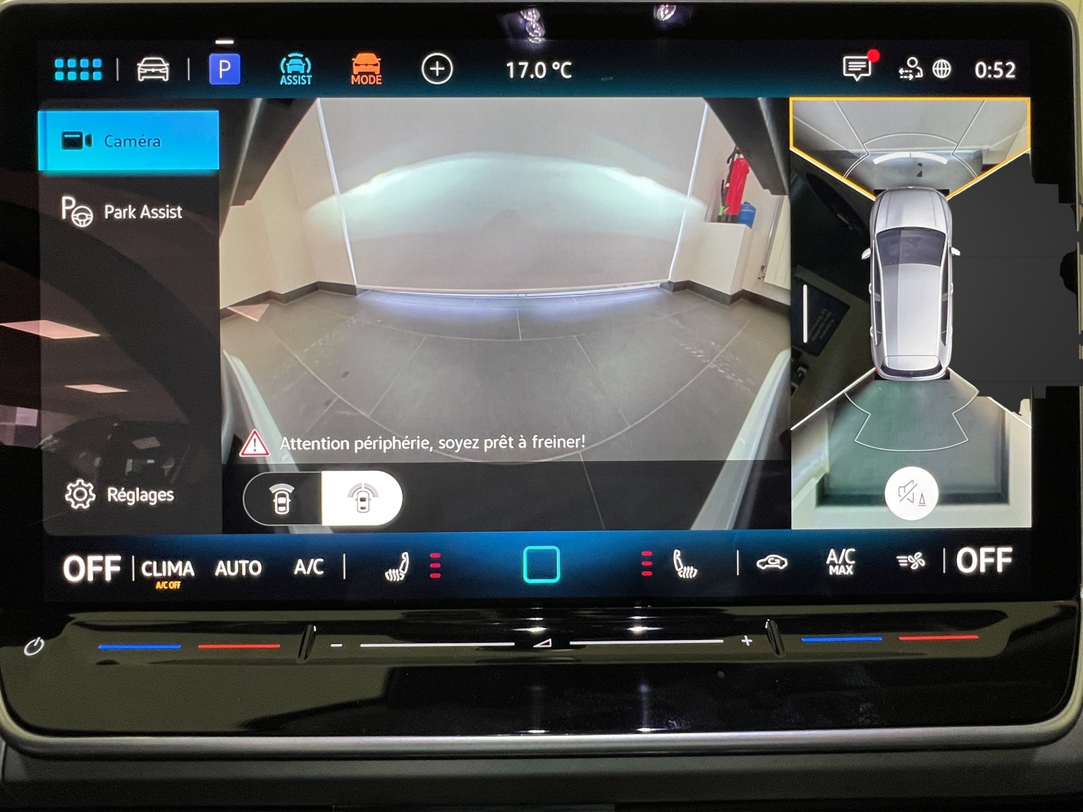 3-Punkt-Automatik-Sicherheitsgurte für die Rücksitzplätze 3-Punkt-Automatik-Sicherheitsgurte vorne mit Höheneinstellung und Gurtstraffer Accoudoir central avant ajustable en hauteur et longueur Airbag: Airbag für Fahrer und Beifahrer mit Beifahrerairbag-Deaktivierung Airbag: Système dairbags de tête pour passagers avant et arrière, y compris airbags latéraux avant Assist: Abbiegebremsfunktion und Ausweichunterstützung Assist: Ablenkungs- und Müdigkeitserkennung Assist: Aide au stationnement (signaux d'avertissement d'obstacles à l'avant et à l'arrière) Assist: Assistant de croisement Assist: Automatische Distanzregelung ACC Assist: Elektronische Parkbremse inkl. Auto-Hold-Funktion Assist: Multifunktionskamera Assist: Programme électronique de stabilisation avec assistance au contrebraquage y compris ABS avec Assist: Spurhalteassistent Lane Assist Assist: Spurwechselassistent Side Assist Assist: Verkehrszeichenerkennung Clima: Climatisation Air Care Climatronic Câble de charge mode 2 type 2 / J 8A pour prise domestique Suisse Câble de charge mode 3 type 2/16 A pour bornes de recharge AC Decor: Incrustations "Nature Cross Brushed" Digital Cockpit Pro, multicolore, différents profils d'information au choix Elektronische Differentialsperre (XDS) Fahrwerk: Fahrprofilauswahl Fussgängerschutzmassnahmen erweitert Garantie: 2 JAHRE NEUWAGEN-GARANTIE OHNE KILOMETER-BEGRENZUNG Garantie: VW Garantie 3 Jahre Lack-Garantie Garantie: VW Garantie: 12 Jahre Karosserie-Garantie gegen Durchrostung Innenspiegel automatisch abblendend Lackierung: Uni-Lackierung Lenkrad: Lenksäule in Höhe und Länge verstellbar Lenkrad: Multifunktions-Lederlenkrad inkl. Schaltwippen Licht: LED-Scheinwerfer mit Tagfahrlicht Licht: Leuchtweitenregulierung dynamisch Lumière: Allumage automatique des phares,avec feux de jour a LED et éclairage d'accueil et de départ Lumière: Assistant feux de route Light Assist Lumière: Phare antibrouillard sur un côté, feux de recul des deux côtés Lève-vitres électrique arrière Lève-vitres électrique avant Make-Up Spiegel beleuchtet in den Sonnenblenden Media: Digitaler Radioempfang DAB+ Media: Interface téléphone avec fonction de recharge inductive Medias: 2 interfaces USB-C à l'avant, 2 prises de charge USB-C sur la console centrale à l'arrière Medias: Fonctions de base de We Connect - gratuites et sans restriction de durée Mèdias: Préparé pour We Connect / VW Connect & We Connect Plus / VW Connect Plus Médias: App-Connect avec sans fil App-Connect pour Apple CarPlay et Android Auto Médias: Radio "Ready 2 Discover", compatible streaming & Internet Nichtraucherausführung - Ablagefach und 12-V-Steckdose vorn OEillets de fixation ISOFIX pour sièges enfants Pare-brise en verre de sécurité feuilleté, à isolation thermique et acoustique Pare-chocs couleur carrosserie Prise 12 Volt dans le coffre Rembourrage: Partie centrale des sièges avant et des sièges extérieurs arrière en tissu "Life" Roues: Jantes en alliage de 17 pouces "Nottingham" Räder: Reifenkontrollanzeige Räder: Tire Mobility Set; 12-Volt-Kompressor und Reifendichtmittel Rétroviseurs extérieurs électriques Scheibenbremsen vorne und hinten Servolenkung elektromechanisch, geschwindigkeitsabhängig geregelt Sieges: appuie-tete optimisés pour la sécurité a l'avant Sitze: 3 Kopfstützen hinten, höheneinstellbar Sitze: Lendenwirbelstützen vorn Sitze: Rücksitzbank ungeteilt, Lehne asymmetrisch geteilt umklappbar, mit Mittelarmlehne Sitze: Vordersitze mit Höheneinstellung Start-Stopp System und Bremsenergierückgewinnung Système de démarrage sans clé Keyless Start sans verrouillage de sécurité Textilfussmatten vorn und hinten Triangle de présignalisation Türgriffmulden beleuchtet Vitrage athermique vert, latéral et arrière Warnton und -leuchte für nicht angelegte Gurte vorne und hinten Wegfahrsperre elektronisch liseuses à LED 2 à lavant et 2 à larrière Éclairage dambiance multicolore (choix entre 10 couleurs différentes) Éclairage périphérique avec projection du logo