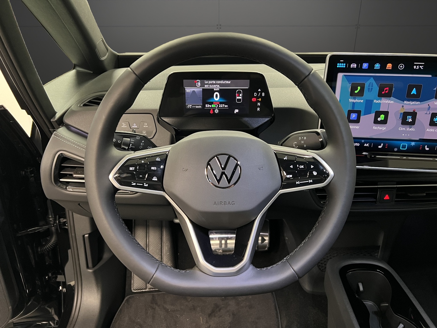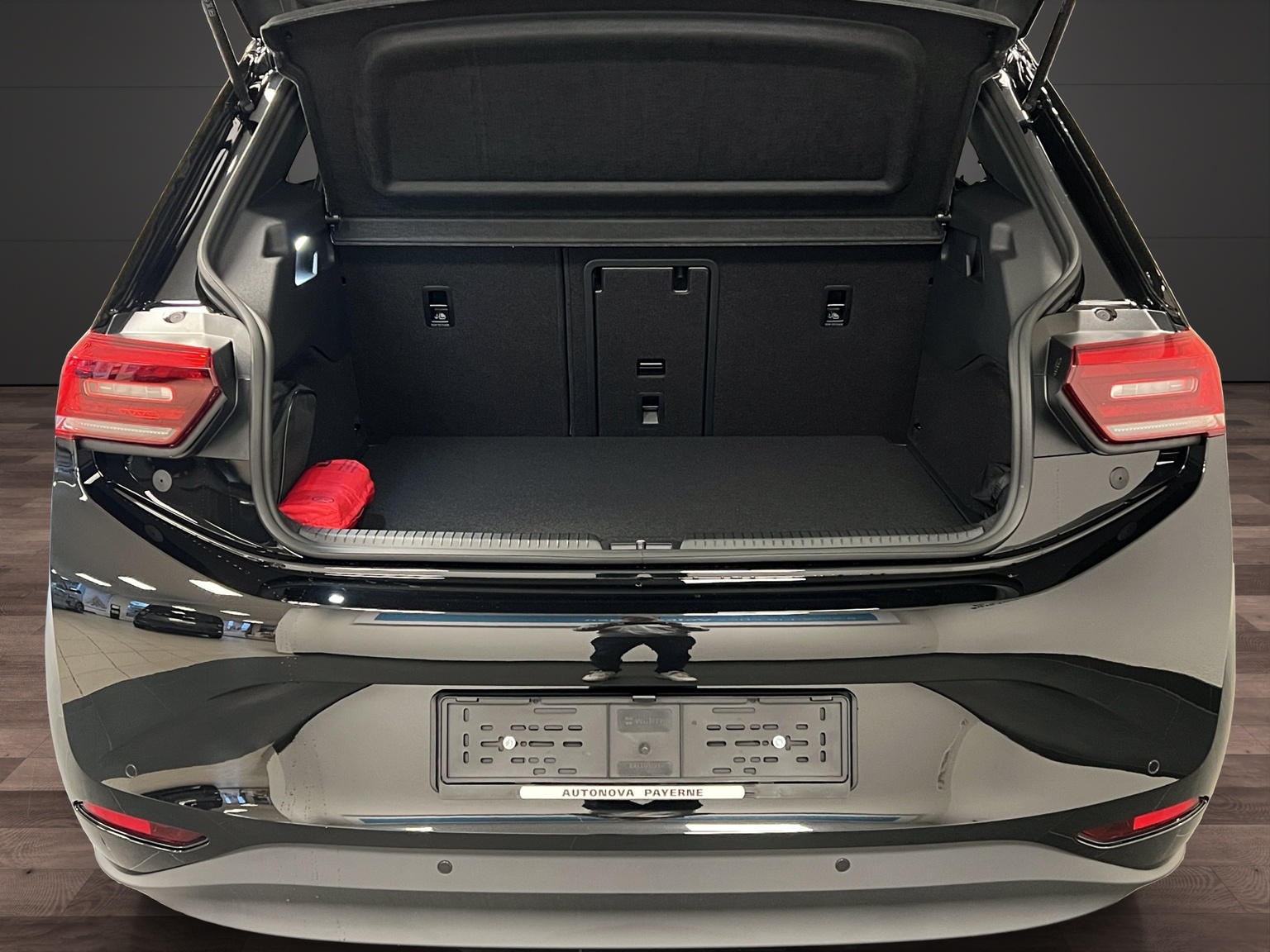 AC Batterieladung bis 11 kW Accoudoirs pour les deux sièges avant Affichage du niveau d'eau de lavage Airbag: Airbag für Fahrer und Beifahrer mit Beifahrerairbag-Deaktivierung Airbag: Kopf- und Seitenairbags vorn, mit Center-Airbag Ambientebeleuchtung, 10-farbig Assist: Ausweichunterstützung mit Abbiegeassistent Assist: Automatische Distanzregelung ACC Assist: Détection de la fatigue et de la distraction Assist: Notbremsassistent "Front Assist" mit Fussgänger- und Radfahrererkennung Assist: Spurhalteassistent Lane Assist Assist: Verkehrszeichenerkennung Ceintures de sécurité automatiques à trois points à l'avant, avec rétracteurs de ceinture Console centrale avec store et compartiment de rangement éclairé Câble de charge pour bornes de recharge AC (jusqu'à 11 kW) Encadrement de l'écran d'infodivertissement et des commandes centrales, y compris le volant, en noir Fahrwerk: Fahrprofilauswahl Garantie: Garantie VW: 8 ans ou 160 000 km de garantie sur la batterie HV Garantie: VW Garantie 3 Jahre Lack-Garantie Garantie: VW Garantie: 12 Jahre Karosserie-Garantie gegen Durchrostung Garantie: VW Garantie: 2 Jahre ohne Kilometerbegrenzung ISOFIX-Halteösen für Kindersitze auf dem äusseren Rücksitzen sowie auf dem Beifahrersitz Lackierung: Metallic-Lackierung Lackierung: Uni-Lackierung Licht: Umfeldbeleuchtung mit Logo-Projektion Lève-vitres électrique avant Media: 2 USB-C Schnittstellen vorn, 2 USB-C Ladebuchsen an der Mittelkonsole hinten Media: Digitaler Radioempfang DAB+ Media: Sprachassistent IDA Media: Wireless App-Connect Mèdias: Préparé pour We Connect / VW Connect & We Connect Plus / VW Connect Plus Mèdias: Radio "Ready 2 Discover" avec écran 12,9 pouces, compatible avec le streaming et Internet Mèdias: Service d'appel d'urgance eCall Médias: 4 + 1 haut-parleurs Prêt pour la mise à niveau Pédales en acier inoxydable, design "Play & Pause" Recharge de la batterie en CC jusquà 165 kW Roues: Jantes en alliage léger 19'' Bergen, noir Roues: jantes en alliage 18 pouces "East Derry", noires, brillantes Räder: Reifenkontrollanzeige Rétroviseur intérieur de sécurité à antiéblouissement automatique Rétroviseurs extérieurs électriques Scheibenwischerintervallschaltung mit Regensensor Servolenkung elektromechanisch Sitze: Rücksitzbank ungeteilt, Lehne geteilt umklappbar Sièges: Sièges conducteur et passager avec réglage en hauteur, manuel Sonnenblenden mit Spiegel, beleuchtet Tissu: Housses de sieges en tissu, design "Taia" Toit en couleur contrastante noir Trousse de secours, triangle de signalisation et gilet de sécurité Warnton und -leuchte für nicht angelegte Gurte vorne und hinten Wegfahrsperre elektronisch Zentralverriegelung mit Funkfernbedienung e-Sound (jusquà 25 km/h)