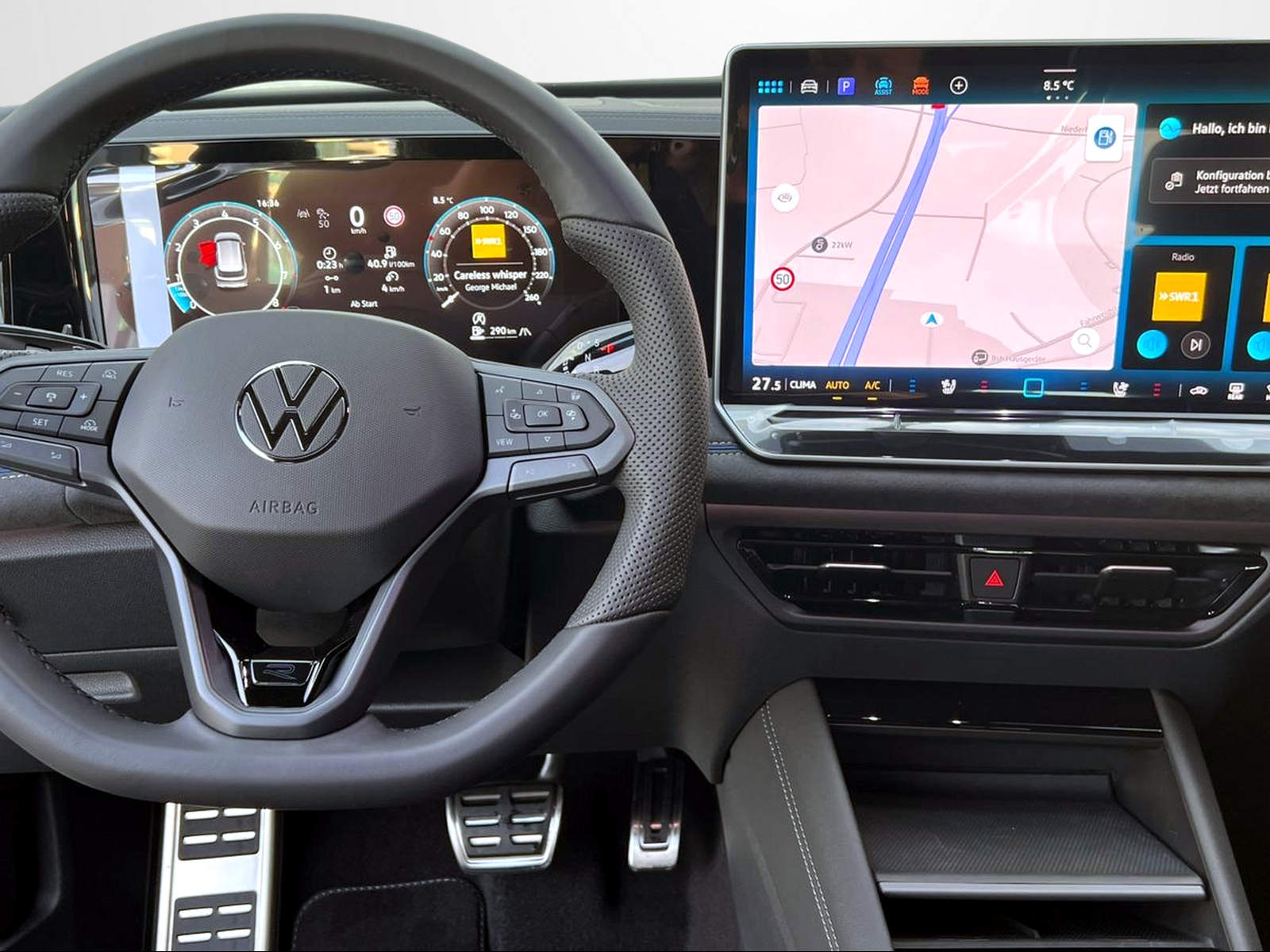 Serienausstattung 12-V-Steckdose an der Mittelkonsole hinten und im Gepäckraum Airbag: Airbag für Fahrer und Beifahrer mit Beifahrerairbag-Deaktivierung Airbag: Kopf- und Seitenairbags vorn und hinten inkl. Center-Airbag Ambientebeleuchtung 30-farbig, in der Instrumententafel sowie in den Türen Assist: Abbiegebremsfunktion und Ausweichunterstützung Assist: Ablenkungs- und Müdigkeitserkennung Assist: Automatische Distanzregelung ACC "stop&go" Assist: Elektronische Parkbremse inkl. Auto-Hold-Funktion Assist: Elektronisches Stabilisierungsprogramm mit Gegenlenkunterstützung Assist: Geschwindigkeitsbegrenzer mit vorausschauender Regelung Assist: Kreuzungsassistent Assist: Multifunktionskamera Assist: Multikollisionsbremse Assist: Notbremsassistent "Front Assist" mit Fussgänger- und Radfahrererkennung Assist: Parkassistent "Park Assist Plus" inkl. Einparkhilfe Assist: Rückfahrkamera Rear View Assist: Spurhalteassistent Lane Assist Assist: Spurwechselassistent "Side Assist" mit Ausparkassistent und Ausstiegswarner Assist: Verkehrszeichenerkennung Aussenspiegel elektrisch einstellbar, beheizbar und anklappbar mit Memory-Funktion Aussenspiegelgehäuse und Türgriffe in Wagenfarbe Bordwerkzeug und Wagenheber Chrom-Applikationen an Spiegeleinstell- und Fensterheberschalter Dachreling silber eloxiert Dekor: Dekoreinlagen "R-Line" für Instrumententafel, Mittelkonsole und Türverkleidungen vorne Dreipunkt-Automatiksicherheitsgurte hinten, für die äusseren Rücksitzplätze mit Gurtstraffer Dreipunkt-Automatiksicherheitsgurte vorne mit Höheneinstellung und Gurtstraffer Einstiegsleisten vorn in Aluminium Fahrwerk: Adaptive Fahrwerksregelung DCC Pro inkl. Fahrprofilauswahl Fensterheber vorne elektrisch Frontscheibe in Wärmeschutzglas Garantie: VW Garantie 3 Jahre Lack-Garantie Garantie: VW Garantie: 12 Jahre Karosserie-Garantie gegen Durchrostung Garantie: VW Garantie: 2 Jahre ohne Kilometerbegrenzung Gepäckraumboden höhenverstellbar Getriebe: Sequentielles 7-Gang-Getriebe mit Automatikfunktion ISOFIX-Halteösen für Kindersitze (auf den äusseren Rücksitzen und auf dem Beifahreresitz, Innenspiegel automatisch abblendend Klima: Klimaanlage Air Care Climatronic Lackierung: Uni-Lackierung Leiste zwischen den Scheinwerfern sowie Türgriffmulden beleuchtet Lenkrad: Lenksäule in Höhe und Länge verstellbar Licht: 3D-LED-Rückleuchten Licht: Abbiege- und Schlechtwetterlicht Licht: Fahrlichtschaltung automatisch, mit LED-Tagfahrlicht sowie "Coming home"- und "Leaving home" Licht: Fernlichtassistent "Light Assist" Licht: LED-Plus- Scheinwerfer Licht: Leuchtweitenregulierung dynamisch, mit dynamischen Kurvenfahrlicht Licht: Nebelschlusslicht einseitig, Rückfahrlicht beidseitig Make-Up Spiegel beleuchtet in den Sonnenblenden Media: 2 USB-C-Schnittstellen vorn, Ladeleistung bis zu 45 W Media: Digital Cockpit Pro, mehrfabriges digitales Kombiinstrument, Media: Digitaler Radioempfang DAB+ Media: Infotainment-System "Ready 2 Discover" mit 32-cm-Display (12,9 Zoll) Media: Online-Dienst mit OCU Media: Telefonschnittstelle Media: Vorbereitet für We Connect / VW Connect & We Connect Plus / VW Connect Plus Media: We Connect Basisfunktionen - Kostenlos und ohne Laufzeitbeschränkung Media: Wireless App-Connect für Apple CarPlay und Android Auto Nichtraucherausführung - Ablagefach und 12-V-Steckdose vorn Ohne Schubladen unter den Vordersitzen Pedale in gebürstetem Edelstahl Räder: 20-Zoll Leichtmetallräder "Leeds" Räder: Reifenkontrollanzeige Räder: Tire Mobility Set: 12-Volt-Kompressor und Reifendichtmittel Scheibenbremsen vorne und hinten Schlüsselloses Startsystem "Keyless Start" ohne Safe-Lock Servolenkung elektromechanisch, geschwindigkeitsabhängig geregelt Sitze: Kopfstützen vorne im Sitz integriert Sitze: Lendenwirbelstützen vorn pneumatisch einstellbar Sitze: Rücksitzbank längs verschiebbar, Lehne asymmetrisch geteilt umklappbar, Sitze: Sport-Komfortsitze vorne, Sitzmittelbahnen der Vordersitze Sitze: Vordersitze höheneinstellbar, ergoActive-Sitz auf der Fahrerseite Sitze: Vordersitze mit Massagefunktion Start-Stopp System mit Bremsenergie-Rückgewinnung Stossfänger in Wagenfarbe, im R-Line - Styling Textilfussmatten vorn und hinten Tür- und Seitenverkleidung in Artvelours Warnton und -leuchte für nicht angelegte Gurte vorne und hinten Wegfahrsperre elektronisch Wärmeschutzverglasung grün, seitlich und hinten Zentralverriegelung mit Fernbedienung