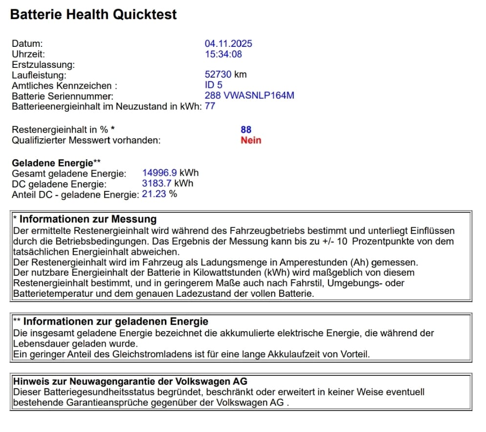 AC Batterieladung bis 11 kW Airbag: Airbag für Fahrer und Beifahrer mit Beifahrerairbag-Deaktivierung Airbag: Kopf- und Seitenairbags vorn, mit Center-Airbag Armlehnen für beide Vordersitze Assist: Abbiegebremsfunktion und Ausweichunterstützung Assist: Automatische Distanzregelung ACC Assist: Einparkhilfe (Warnsignale bei Hindernissen im Front- und Heckbereich) Assist: Müdigkeitserkennung Assist: Notbremsassistent "Front Assist" mit Fussgänger- und Radfahrererkennung Assist: Notrufsystem eCall Assist: Spurhalteassistent Lane Assist Assist: Verkehrszeichenerkennung Aussenspiegel elektrisch einstellbar, beheizbar und anklappbar Box telematico come preparazione per il trasferimento volontario e l'analisi dei dati del veicolo Cassetta di pronto soccorso, triangolo di segnalazione, gilet di segnalazione e 2 maschere Cavo di ricarica per presa domestica svizzera (fino a 1,8 kW) Cuscino: Fascia centrale dei sedili anteriori e dei sedili posteriori esterni in tessuto "GTX" DC Batterieladung bis 135 kW Dreipunkt-Automatiksicherheitsgurte hinten Dreipunkt-Automatiksicherheitsgurte vorne mit Höheneinstellung und Gurtstraffer Einfassung des Infotainment-Displays und der zentralen Bedienelemente in Schwarz Elektronisches Stabilitäts-Programm ESP Fahrwerk: Fahrprofilauswahl Garantie: VW Garantie 3 Jahre Lack-Garantie Garantie: VW Garantie: 12 Jahre Karosserie-Garantie gegen Durchrostung Garantie: VW Garantie: 2 Jahre ohne Kilometerbegrenzung Garanzia: Garanzia VW: 8 anni o 160.000 km di garanzia sulla batteria HV Getriebe: 1-Gang Getriebe automatisiert ISOFIX-Halteösen für Kindersitze auf dem äusseren Rücksitzen sowie auf dem Beifahrersitz Illuminazione ambientale, 30 colori Lackierung: Uni-Lackierung Ladekabel für Wechselstrom-Ladestationen (bis zu 11 kW) Licht: Drittes Bremslicht Licht: Nebelschlussleuchte Licht: Umfeldbeleuchtung mit Logo-Projektion Media: Preparazione per We Connect e We Connect Plus Media: Sistema di navigazione "Discover Pro" che include "Streaming e Internet" Media: Telefonschnittstelle "Comfort" mit induktiver Ladefunktion Media: Wireless App-Connect Pacchetto: Pacchetto comfort Pacchetto: Pacchetto di design Pedale in Edelstahl, "Play & Pause"-Design Ruote: Cerchi in lega da 20 '' "Ystad", neri, lucidi Räder: Reifenkontrollanzeige Schlüsselloses Startsystem - Keyless Start Servolenkung elektromechanisch Sicherheitsinnenspiegel automatisch abblendbar Sitze: Fahrer- und Beifahrersitz mit Höheneinstellung, manuell Sitze: Kopfstützen vorne und hinten Sitze: Rücksitzlehne asymmentrisch geteilt umklappbar, mit Durchlademöglichkeit und Armlehne Sonnenblenden mit Make-up-Spiegel, beleuchtet Warnton und -leuchte für nicht angelegte Gurte vorne und hinten Wegfahrsperre elektronisch Wärmepumpe zur Reichweitenoptimierung Zentralverriegelung mit Funkfernbedienung