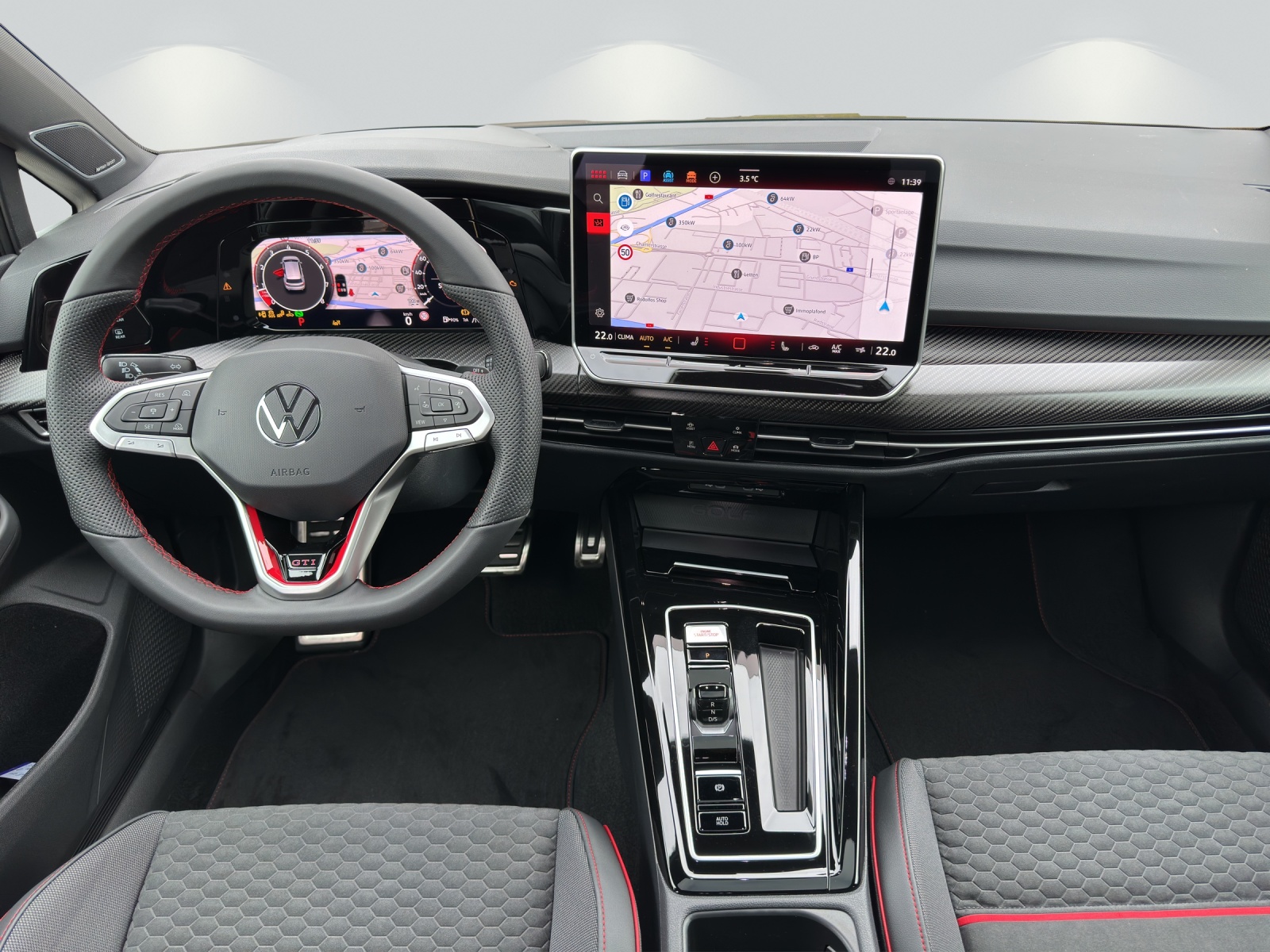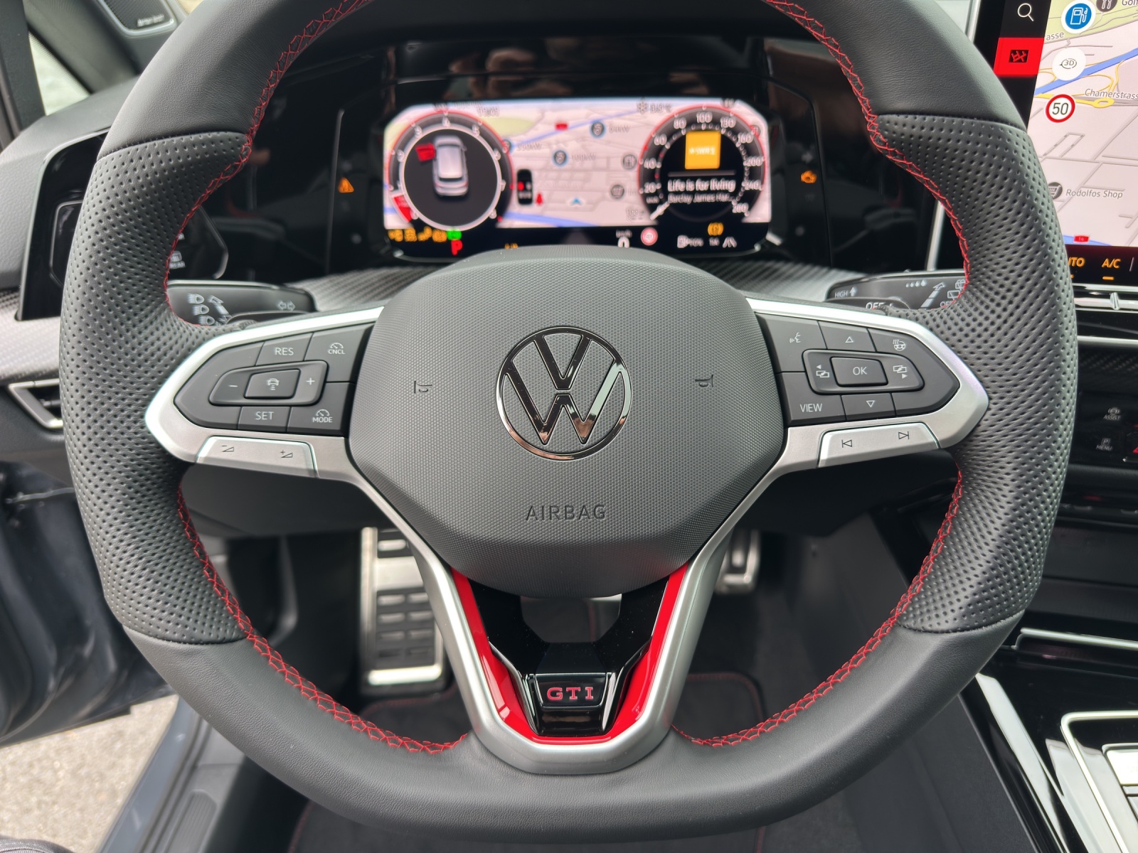 Sonderausstattung Assist: Umgebungsansicht Area View inkl. Rückfahrkamera Rear View Dekor: Dekoreinlagen in Carbon für Instrumententafel und Türverkleidungen vorn Garantie: Volkswagen Garantie+ (4 Jahre / 100000 km) Media: Digitales Soundsystem "Harman/Kardon" Media: Navigationssystem "Discover" inkl. "Streaming & Internet" Paket: Designpaket "Black Style" inkl. LED-Matrix Scheinwerfer Paket: GTI Performance Paket Paket: Technikpaket "Park & Comfort" ohne SAFELOCK Panorama-Ausstell-/Schiebedach Räder: 19-Zoll Leichtmetallräder "Estoril" in Schwarz