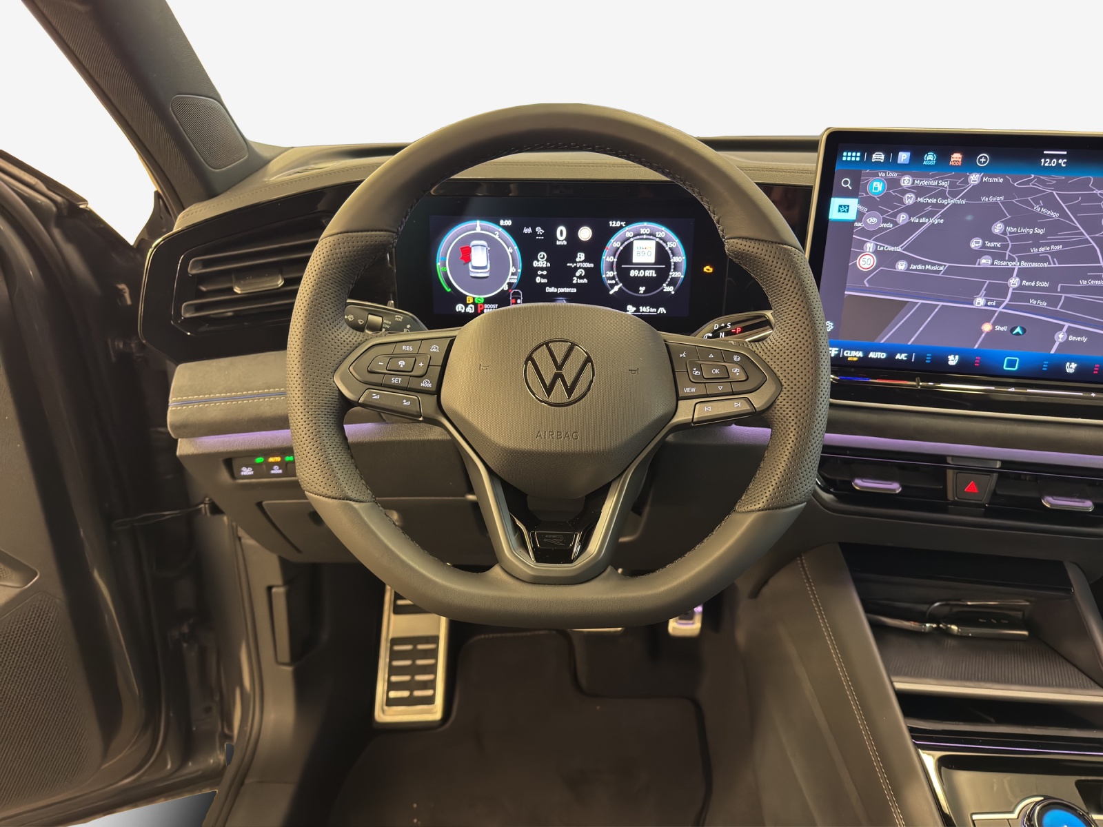Dotazione di serie Airbag: Airbag für Fahrer und Beifahrer mit Beifahrerairbag-Deaktivierung Airbag: Airbag per la testa e laterali anteriori e posteriori, incluso airbag centrale Applicazioni cromate sugli interruttori di regolazione degli specchietti Appoggiatesta posteriori 3 Assetto: Controllo adattivo del telaio DCC Pro con selezione del profilo di guida Assist: Abbiegebremsfunktion und Ausweichunterstützung Assist: Ablenkungs- und Müdigkeitserkennung Assist: Controllo automatico della distanza ACC "stop&go" Assist: Freno di stazionamento elettronico con funzione Auto-Hold Assist: Kreuzungsassistent Assist: Multikollisionsbremse Assist: Notbremsassistent "Front Assist" mit Fussgänger- und Radfahrererkennung Assist: Parkassistent "Park Assist Plus" inkl. Einparkhilfe Assist: Programma elettronico di stabilità con assistenza alla controsterzata Assist: Rückfahrkamera Rear View Assist: Servizio di emergenza Assist: Spurhalteassistent Lane Assist Assist: Spurwechselassistent "Side Assist" mit Ausparkassistent und Ausstiegswarner Assist: Telecamera multifunzionale Assist: Verkehrszeichenerkennung Cambio: Cambio a 6 marce sequenziale DSG con funzione automatica Cavo di ricarica modalità 2 tipo 2 / J 8A, 11kW per presa domestica svizzera Cavo di ricarica modalità 3 tipo 2/16 A, 50 kW per stazioni di ricarica AC Chiusura delle porte centralizzata con telecomando Cinture di sicurezza automatiche a 3 punti posteriori, per i sedili posteriori esterni con tendicing Clima: Impianto di climatizzazione Air Care Climatronic Decor: Intarsi "R-Line" per il quadro strumenti, la console centrale Dreipunkt-Automatiksicherheitsgurte vorne mit Höheneinstellung und Gurtstraffer Fensterheber vorne elektrisch Freni a disco anteriori e posteriori Garantie: VW Garantie: 2 Jahre ohne Kilometerbegrenzung Garanzia: Garanzia VW 3 anni di garanzia sulla vernice Garanzia: Garanzia VW: 12 anni di garanzia contro la ruggine Illuminazione ambientale a 30 colori nel quadro strumenti e nelle portiere Innenspiegel automatisch abblendend Involucri degli specchietti retrovisori esterni e maniglie delle porte nel colore della carrozzeria Kit di strumenti e martinetto Lackierung: Uni-Lackierung Leiste zwischen den Scheinwerfern sowie Türgriffmulden beleuchtet Limitatore di velocità con controllo predittivo Listelli sottoporta anteriori in alluminio Luce di svolta e luce di maltempo Luce: Controllo dinamico della gamma dei fari con luci dinamiche di svolta Luce: Dispositivo assistenza abbaglianti "Light Assist" Luce: Luci di marcia automatiche, con luci diurne a LED e funzioni "Coming home" e "Leaving home" Luce: Luci posteriori a LED 3D Luce: Proiettori LED Plus Luce: Retronebbia posteriore, luce posteriore su entrambi i lati Media: 2 interfacce USB-C nella parte anteriore, potenza di ricarica fino a 45 W Media: App Wireless Connect per Apple CarPlay e Android Auto Media: Digital Cockpit Pro, quadro strumenti digitale multicolore, vari profili info selezionabili, Media: Digitaler Radioempfang DAB+ Media: Funzioni di base di We Connect - gratuite e senza limitazioni di termine Media: Preparato per We Connect / VW Connect e We Connect Plus / VW Connect Plus Media: Servizi online con OCU Media: Sistema di infotainment Ready 2 Discover con display da 32 cm (12,9 pollici) Media: Telefonschnittstelle Occhielli di fissaggio ISOFIX per seggiolini (sui sedili posteriori esterni e sul sedile anteriore Parabrezza in vetro atermico Paraurti in tinta con la carrozzeria, in stile R-Line Pedali in acciaio spazzolato Presa da 12 V sulla consolle centrale posteriore e nel bagagliaio Rail sul tetto argento anodizzato Rivestimento porta e laterale in Artvelours Route: Cerchi in lega da 19 pollici "Coventry" Route: Tire Mobility Set: compressore da 12 volt e sigillante per pneumatici Räder: Reifenkontrollanzeige Sedili: Sedile posteriore a panca spostabile longitudinalmente, Sedili: Sedili anteriori comfort sportivi, pannelli centrali dei sedili anteriori Sedili: Sedili anteriori regolabili in altezza, sedile ergoActive sul lato del conducente Sedili: Supporti lombari anteriori regolabili pneumaticamente Senza cassetti sotto i sedili anteriori Servosterzo elettromeccanico, regolazione in funzione della velocità Sistema di avviamento senza chiave Keyless Start senza chiusura di sicurezza Sistema start-stop con recupero dellenergia di frenata Sitze: Kopfstützen vorne im Sitz integriert Sitze: Vordersitze mit Massagefunktion Specchietti di cortesia illuminati nelle alette parasole Specchietti retrovisori esterni regolabili, riscaldati e ripiegabili elettricamente Textilfussmatten vorn und hinten Versione non fumatori: vano portaoggetti anteriore e presa da 12 V Vetri atermici verdi, laterali e posteriore Volante: Piantone sterzo regolabile in altezza e lunghezza Warnton und -leuchte für nicht angelegte Gurte vorne und hinten Wegfahrsperre elektronisch
