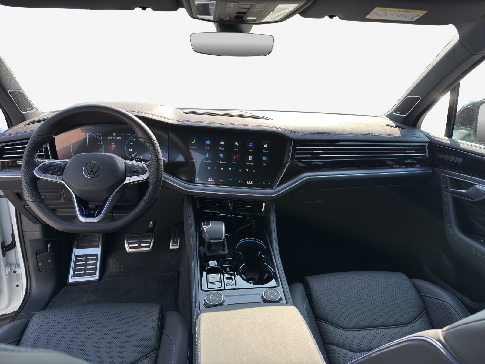 4MOTION Active Control incl. selezione del profilo di guida Airbag: Airbag für Fahrer und Beifahrer mit Beifahrerairbag-Deaktivierung Airbag: Sistema di airbag per la testa incl. airbag laterali anteriori Ambientebeleuchtung 30-farbig Ampliamento delle misure a tutela dei pedoni Aspirazione d'aria con filtro a carboni attivi Assist: Ablenkungs- und Müdigkeitserkennung Assist: Assistente partenza e discesa in salita Assist: Controllo automatico della distanza ACC "stop&go" (fino a 210 km/h) Assist: Freno di parcheggio elettronico incl. funzione Auto Hold, Hill Hold Ext., Hill Climb Assist Assist: Freno multicollisione 2.0 Assist: Proaktives Insassenschutzsystem Assist: Programma elettronico di stabilità con assistenza alla controsterzata Assist: Sistema di controllo perimetrale Front Assist Assist: Telecamera multifunzionale Assist: Verkehrszeichenerkennung Attacchi ISOFIX (predisposizione per il fissaggio di 2 seggiolini per bambini sui sedili posteriori, Bloccaggio automatico del differenziale Cassetta del pronto soccorso e triangolo demergenza Cassetto portaoggetti, con illuminazione a LED e refrigerato Cavo di ricarica modalità 2 tipo 2 / J 8A, 1.8kW per presa domestica svizzera Cavo di ricarica modalità 3 tipo 2/16 A, 3,6 kW per stazioni di ricarica AC Chiusura di sicurezza elettrica per bambini alle porte posteriori, Cinture di sicurezza automatiche a tre punti posteriori, laterali con etichetta ECE Clima: Climatizzatore a 4 zone Air Care Climatronic» con dispositivo di comando posteriore Console centrale in nero lucido, bordi in alluminio anodizzato scuro Corpo specchio esterno in nero Decor: Inserti in spazzola corta scura per il cruscotto e le finiture delle porte Digital Cockpit multimodale, display combinato premium da 12 pollici, Dispositivo di traino incl. assistente per manovre con rimorchio Trailer Assist Fensterheber vorne und hinten elektrisch Freni a disco anteriori e posteriori blu Garantie: VW Garantie: 2 Jahre ohne Kilometerbegrenzung Garantie: Volkswagen Garantie+ (3 Jahre / 100000 km) Garanzia: Garanzia VW 3 anni di garanzia sulla vernice Garanzia: Garanzia VW: 12 anni di garanzia contro la ruggine Getriebe: 8-Stufen-Automat sequentiell Griglia della calandra Chrome & Style Ladekantenschutz in Edelstahl Licht: Drittes Bremslicht Licht: Dynamische Fernlichtregulierung "Dynamic Light Assist" Liste cromate sui finestrini laterali Listelli decorativi in nero sui finestrini laterali Listelli sottoporta in acciaio inossidabile, anteriori con logo R-Line Luce: Controllo dinamico della gamma dei fari con luci dinamiche di svolta Luce: IQ.LIGHT - Lampada frontale a matrice HD con luce per condizioni atmosferiche avverse Luce: Luce per tutte le stagioni, di svolta e autostradale Luce: Retronebbia su entrambi i lati, luce di retromarcia su entrambi i lati Luci di lettura a LED anteriori e posteriori Luci interne nel vano gambe anteriori e posteriori Luci: Luci posteriori a LED rosso scuro con indicatore dinamico, logo Volkswagen illuminato Lunotto posteriore riscaldabile e tregilunotto Media: Radio digitale DAB+ Media: Security & Service, inclusa la funzione di chiamata di emergenza Media: Servizi mobili online Media: Sistema audio DYNAUDIO Consequence Pacchetto: Pacchetto Connettivita Pacchetto: Pacchetto Design & Comfort per R Pacchetto: Pacchetto tecnologico per R Paraurti dallo stile R-Line, parti inferiori dei paraurti e delle porte nel colore della carrozzeria Pedaliera in acciaio inossidabile R-Line Piano di carico posteriore continuo Portellone del bagagliaio con apertura e chiusura elettrica Rivestimento in nero (Soul) Route: Tire Mobility Set: compressore da 12 volt e sigillante per pneumatici Ruote: Cerchi in lega leggera Estoril 9,5 J x 22, Volkswagen R, neri torniti a specchio Räder: Reifenkontrollanzeige Scheinwerferreinigungsanlage Scritta "R" sul portellone del bagagliaio Scritta Touareg sul portellone del bagagliaio Sedili: Panca e schienale posteriori suddivisi asimmetricamente, spostabili longitudinalmente e Sedili: Sedili anteriori a climatizzazione attiva con programmi di massaggio Serbatoio del carburante con 75 litri di capienza Servosterzo elettromeccanico, regolazione in funzione della velocità Sistema start-stop con recupero dellenergia di frenata Specchio per il trucco illuminato nelle doppie alette parasole Strumento combinato con tachimetro elettronico, contachilometri totale e parziale, contagiri Supporti: Sistema di navigazione "Discover Pro Max" Terminali di scarico trapezoidali di design, a destra e a sinistra in cromo Tettuccio panoramico scorrevole/basculante con tettuccio panoramico posteriore Textilfussmatten vorn und hinten Verniciatura: Verniciature metallizzate / effetto perlato Versione non fumatori: Vano portaoggetti e presa da 12 V anziché posacenere Vetri atermici verdi, laterali e posteriore Vetri laterali posteriori e lunotto sfumati Volante: Piantone sterzo regolabile in altezza e lunghezza Volante: Volante multifunzionale in pelle (3 razze) con bilancieri, riscaldabile Volkswagen TopCare: Service Warnton und -leuchte für nicht angelegte Gurte vorne und hinten Wegfahrsperre elektronisch