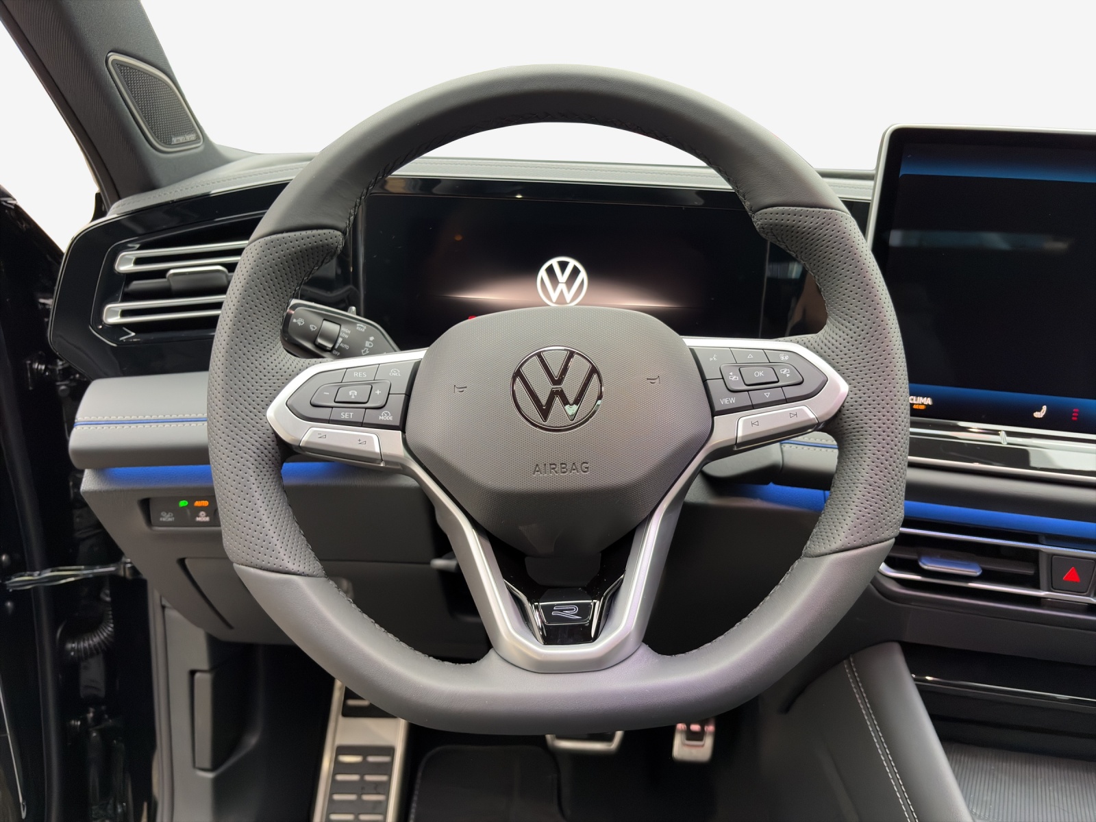 Airbag: Airbag für Fahrer und Beifahrer mit Beifahrerairbag-Deaktivierung Airbag: Airbag per la testa e laterali anteriori e posteriori, incluso airbag centrale Applicazioni cromate sugli interruttori di regolazione degli specchietti Appoggiatesta posteriori 3 Assetto: Controllo adattivo del telaio DCC Pro con selezione del profilo di guida Assist: Abbiegebremsfunktion und Ausweichunterstützung Assist: Ablenkungs- und Müdigkeitserkennung Assist: Controllo automatico della distanza ACC "stop&go" Assist: Freno di stazionamento elettronico con funzione Auto-Hold Assist: Kreuzungsassistent Assist: Multikollisionsbremse Assist: Notbremsassistent "Front Assist" mit Fussgänger- und Radfahrererkennung Assist: Parkassistent "Park Assist Plus" inkl. Einparkhilfe Assist: Programma elettronico di stabilità con assistenza alla controsterzata Assist: Rückfahrkamera Rear View Assist: Servizio di emergenza Assist: Spurhalteassistent Lane Assist Assist: Spurwechselassistent "Side Assist" mit Ausparkassistent und Ausstiegswarner Assist: Telecamera multifunzionale Assist: Verkehrszeichenerkennung Cambio: Cambio a 7 marce sequenziale con funzione automatica Chiusura delle porte centralizzata con telecomando Cinture di sicurezza automatiche a 3 punti posteriori, per i sedili posteriori esterni con tendicing Clima: Impianto di climatizzazione Air Care Climatronic Decor: Intarsi "R-Line" per il quadro strumenti, la console centrale Dreipunkt-Automatiksicherheitsgurte vorne mit Höheneinstellung und Gurtstraffer Fensterheber vorne elektrisch Freni a disco anteriori e posteriori Garantie: VW Garantie: 2 Jahre ohne Kilometerbegrenzung Garanzia: Garanzia VW 3 anni di garanzia sulla vernice Garanzia: Garanzia VW: 12 anni di garanzia contro la ruggine Illuminazione ambientale a 30 colori nel quadro strumenti e nelle portiere Innenspiegel automatisch abblendend Involucri degli specchietti retrovisori esterni e maniglie delle porte nel colore della carrozzeria Kit di strumenti e martinetto Lackierung: Uni-Lackierung Leiste zwischen den Scheinwerfern sowie Türgriffmulden beleuchtet Limitatore di velocità con controllo predittivo Listelli sottoporta anteriori in alluminio Luce di svolta e luce di maltempo Luce: Controllo dinamico della gamma dei fari con luci dinamiche di svolta Luce: Dispositivo assistenza abbaglianti "Light Assist" Luce: Luci di marcia automatiche, con luci diurne a LED e funzioni "Coming home" e "Leaving home" Luce: Luci posteriori a LED 3D Luce: Proiettori LED Plus Luce: Retronebbia posteriore, luce posteriore su entrambi i lati Media: 2 interfacce USB-C nella parte anteriore, potenza di ricarica fino a 45 W Media: App Wireless Connect per Apple CarPlay e Android Auto Media: Digital Cockpit Pro, quadro strumenti digitale multicolore, vari profili info selezionabili, Media: Digitaler Radioempfang DAB+ Media: Funzioni di base di We Connect - gratuite e senza limitazioni di termine Media: Preparato per We Connect / VW Connect e We Connect Plus / VW Connect Plus Media: Servizi online con OCU Media: Sistema di infotainment Ready 2 Discover con display da 32 cm (12,9 pollici) Media: Telefonschnittstelle Occhielli di fissaggio ISOFIX per seggiolini (sui sedili posteriori esterni e sul sedile anteriore Parabrezza in vetro atermico Paraurti in tinta con la carrozzeria, in stile R-Line Pedali in acciaio spazzolato Piano di carico regolabile in altezza Presa da 12 V sulla consolle centrale posteriore e nel bagagliaio Rail sul tetto argento anodizzato Rivestimento porta e laterale in Artvelours Route: Cerchi in lega da 19 pollici "Coventry" Route: Tire Mobility Set: compressore da 12 volt e sigillante per pneumatici Räder: Reifenkontrollanzeige Sedili: Sedile posteriore a panca spostabile longitudinalmente, Sedili: Sedili anteriori comfort sportivi, pannelli centrali dei sedili anteriori Sedili: Sedili anteriori regolabili in altezza, sedile ergoActive sul lato del conducente Sedili: Supporti lombari anteriori regolabili pneumaticamente Senza cassetti sotto i sedili anteriori Servosterzo elettromeccanico, regolazione in funzione della velocità Sistema di avviamento senza chiave Keyless Start senza chiusura di sicurezza Sistema start-stop con recupero dellenergia di frenata Sitze: Kopfstützen vorne im Sitz integriert Sitze: Vordersitze mit Massagefunktion Specchietti di cortesia illuminati nelle alette parasole Specchietti retrovisori esterni regolabili, riscaldati e ripiegabili elettricamente Textilfussmatten vorn und hinten Versione non fumatori: vano portaoggetti anteriore e presa da 12 V Vetri atermici verdi, laterali e posteriore Volante: Piantone sterzo regolabile in altezza e lunghezza Warnton und -leuchte für nicht angelegte Gurte vorne und hinten Wegfahrsperre elektronisch