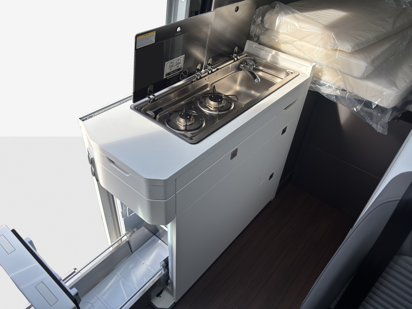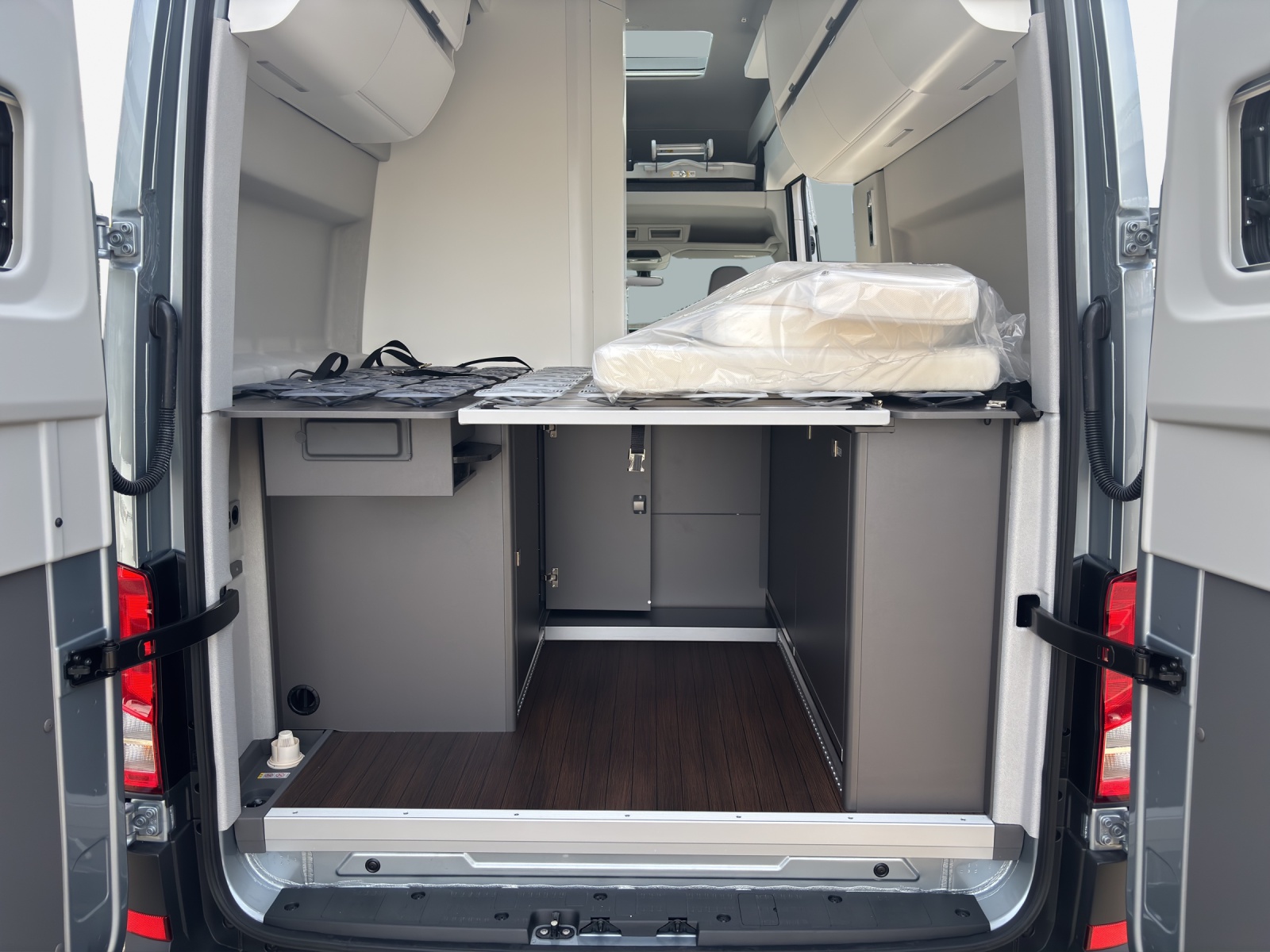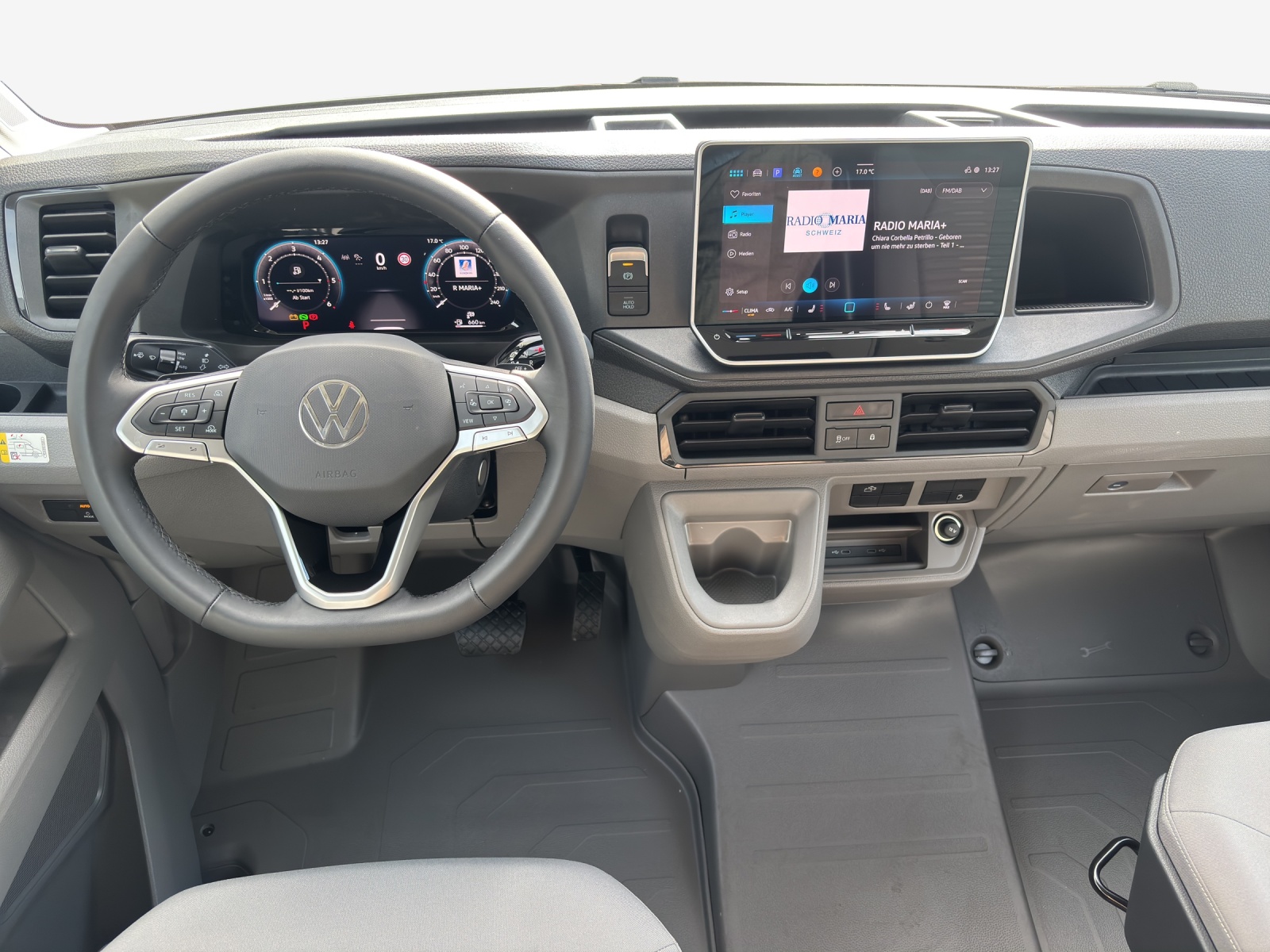 12-V-Steckdose und 4 Becherhalter in der Armaturentafel 2 12-V-Steckdosen im Fahrerhaus (in der Schalttafel) 2. Batterie mit Trennrelais und Batterieüberwachung Abblendbarer Innenspiegel Ablagefächer in den Fahrerhaustüren Airbag: Airbag für Fahrer und Beifahrer mit Beifahrer-Airbag-Deaktivierung Anschluss für Aussendusche inkl. Schlauch und Brause Assist: Ablenkungs- und Müdigkeitserkennung Assist: Berganfahrassistent Assist: Einparkhilfe im Front- und Heckbereich Assist: Front Assist mit Warnen und Bremsen auf Fahrzeuge, Fussgänger und Radfahrer Assist: Geschwindigkeitsbegrenzer Assist: Geschwindigkeitsregelanlage, elektronisch inkl. Geschwindigkeitsbegrenzer Assist: Multifunktionskamera Assist: Ohne Totwinkelwarnung (Blind Spot Information System BSIS), Assist: Spurhalteassistent "Lane Assist" Assist: Totwinkelwarnung rechts (Blind Spot Information System BSIS) Assist: Traktionskontrolle Assist: Verkehrszeichenerkennung Aussenspiegel links, konvex, mit integrierter LED-Blinkleuchte und Weitwinkelbereich Aussenspiegel rechts, konvex, mit integrierter LED-Blinkleuchte und Weitwinkelbereich Aussenspiegel, elektrisch einstell- und beheizbar Beleuchtung, Steckdosen und Schalter im Innenraum Bodenbelag im Fahrgastraum aus Kunststoff Camperfenster an Heckflügeltüren und Dachgalerie mit zwei 1 DIN-Schächten und Leseleuchte Dachluke über Nasszelle und Pilzlüfter über Gang Doppelbett, quer Bett hinten seitlich Dreipunkt-Automatiksicherheitsgurte mit Gurthöhenverstellung vorn und elektrischer Elektrische Fensterheber im Fahrerhaus Elektrische Klemmleiste und Funktionssteuergerät 1 mit ABH-Programierung Elektromechanische Lenkung, Lenkrad in Höhe und Reichweite verstellbar Elektromechanische Parkbremse (EPB) Elektronisches Stabilisierungsprogramm und ABS Fahrwerk: Scheibenbremsen vorn und hinten Fahrwerk: Vorderachse verstärkt mit, Stabilisator und Koppelstange Garantie: 2 Jahre ohne Kilometerbegrenzung (ab 1. Inv.) Garantie: Garantie gegen Karosserie-Durchrostung: 12 Jahre Garantie: Garantie gegen Lackmängel: 3 Jahre Garantie: VW Anschlussgarantie (2+3 Jahre, max. 200'000km) Genarbte Kunststoffseitenschutzleisten Getriebe: 8-Stufen-Automat Handschuhfach und Ablagefächer im Armaturenbrett Hinterachse als Starrachse mit Längsblattfedern und Anschlagpuffern Instrumenteneinsatz (km/h); Anzeigen für Geschwindigkeit, Gesamt-/Tagesstrecke Kindersicherung elektrisch betätigt Klima: Gasheizung und Warmwasserbereiter mit zusätzlichen elektrischen Heizstäben Klima: Heiz- und Frischluftanlage mit mehrstufigem Frischluftgebläse, Umluftbetrieb Kühlerschutzgitter, unlackiert Lackierung: Uni-Lackierung Lenkrad: Leder Multifunktionslenkrad mit Tiptronic Licht: Leuchtweitenregulierung Licht: Nebelschlussleuchte Licht: Tagesfahrlichtschaltung mit Assistenzfahrlicht Media: Digital Cockpit Pro (10´´-TFT-Farbdisplay) Media: Digitaler Radioempfang DAB+ Media: Radio Composition 4 Lautsprecher Mittelausströmer, seitliche Ausströmer, Fussraumausströmer und Defrosterdüsen Motor-Start-Stopp-System mit Bremsenergie-Rückgewinnung Naßzelle (Dusche, Toilette, Waschbecken, Polster: Sitzbezüge in Stoff Räder: Radmittenabdeckungen Räder: Reifendruck-Kontrollsystem (direkt messend) Räder: Stahlfelgen 16" mit Reifen 205/75 R16 (235/65 R16C) Räder: Tire Mobility Set (Reifendichtmittel und 12 Volt Kompressor) Scheibenwischer-Intervallschaltung mit Licht- und Regensensor Servolenkung elektromechanisch Sitzbank für Erwachsene mit Dreipunktgurt, Isofix Sitze: 2er-Sitzbank in Dinette mit 3-Punkt-Gurt & Kindersitzverankerung ISOFIX und Top Tether Steckdosen an der Aussenseite der Küche Stossstangen vorne in Grau mit lackierter Blende in Wagenfarbe Toilette mit Sogentlüftung Truma Combi 6 Wasser-, Luftheizung mit Gas und Vorbereitung für 2 Gasflaschen (2x11kg) Türen: Heckflügeltüren hinten, Öffnungswinkel 180° Türen: Schiebetüre rechts Vorbereitung 230V Aussensteckdose Vorbereitung Alcohol Interlock Vorfelbeleuchtung in Regenrinne integriert, auf der rechten Seite Wegfahrsperre, elektronisch Wärmeschutzverglasung der Frontscheibe Zentralverriegelung "Keyless-Go" ohne Safesicherung Zweiteilige Moskitonetztür an Schiebetür